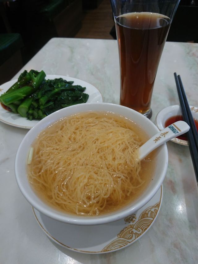 麦奀这家云吞面店在香港很出名,我也曾经在香港吃过一次,听说现在在广州新开了一家,刚好那天路过,见到了当然就要试一下。餐厅具体位于中山一路上,离中山医不远。点了一碗普通的云吞面,很小一碗,点一碗云吞面送一杯清凉茶,云吞面很爽口,面条弹牙,汤底的味道也很好,不咸不淡,有鱼的香味。当时老板刚好在店里,就和老板聊了一下,他说食材都是从香港运过来的,怪不得面条特别爽口。也不知道为什么,香港的面条就是和大陆的不一样。但是这里的价位也跟香港看齐了。