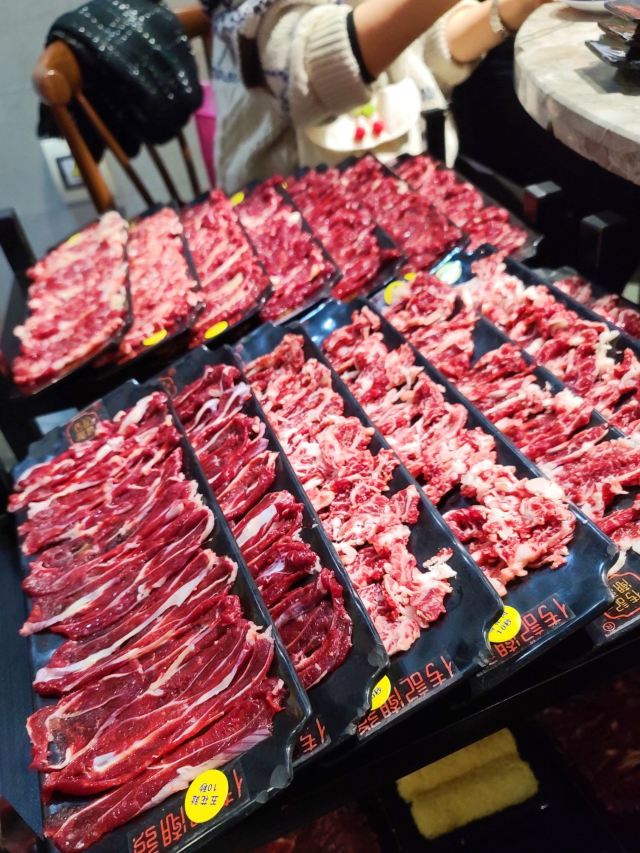 吊龙肉,鲜牛丸,雪花肉,匙仁肉,三花趾,牛胸口油,肥牛肉,嫩牛肉,五花趾