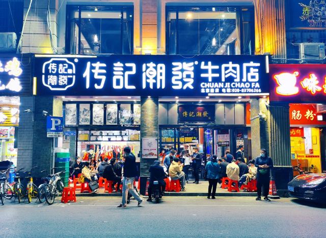 璞石天祺作为“食嘢食味道”的老广,其实我一向不是很喜欢吃火锅,一是觉得不管涮的是什么,最后吃到的嘴的,仿佛也只是酱料的味道;二是火锅似乎当时吃了不少东西,但之后很快就又饿了。所以,对于讲究“色、香、味”俱全的吃货来说,寻常火锅很难“达标”。 🥘然而,“潮州牛肉火锅”却是个例外,因为它极致地突出了牛肉的“鲜”,从新宰的黄牛肉中,以“庖丁解牛”的刀法,将不同部位的牛肉,切割薄如蝉翼摆放妥当,然后只需放入清汤底中10秒左右烫熟即可。 🥩烫熟的牛肉,不仅“色、香”诱人,而且保留了 黄牛肉独特的肉“鲜”,完美演绎了粤菜所追求最好的味道,就是要尽量保留不同食材自带原汁原味“新鲜”的原则。因此,火锅也能做到“色、香、味”俱全。 🥘每到寒冷的冬日,遍布老城区大街小巷的『潮州牛肉火锅店』就成为最受广州人欢迎的地方,不仅可以热乎乎地边吃边聊,而且还可以有滋有味。『传记』,就是众多潮州牛肉火锅店其中的佼佼者。有图有真相,每到饭点,看看店门口坐等位置的人群,就知道它的受欢迎程度了。 传记潮发牛肉火锅(北京路店) 地点:广州市越秀区北京路与珠光路交界