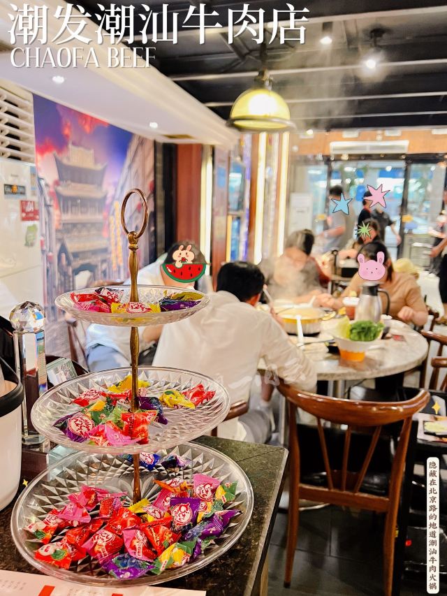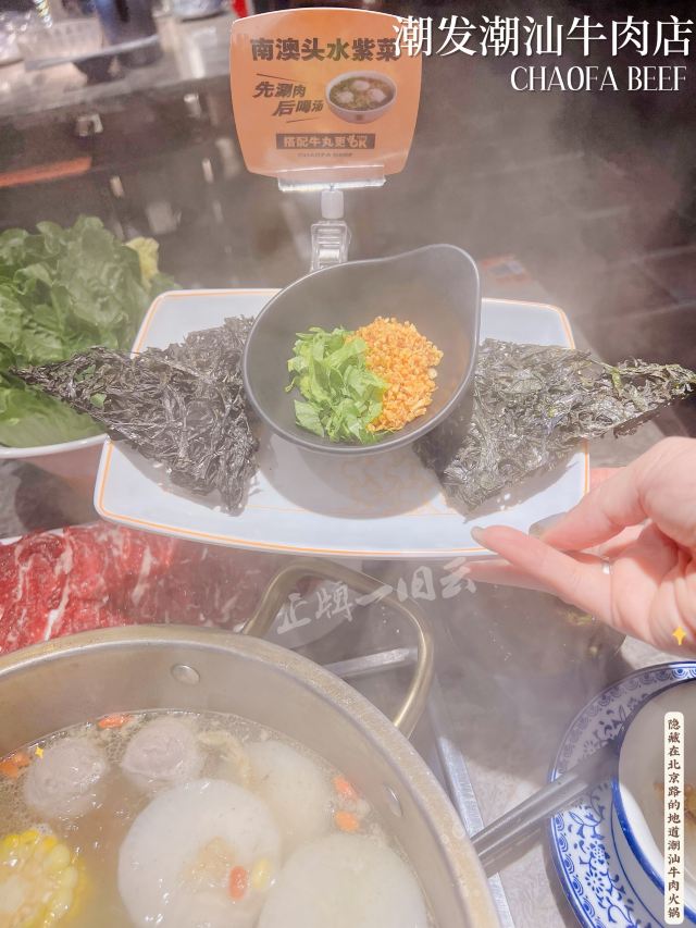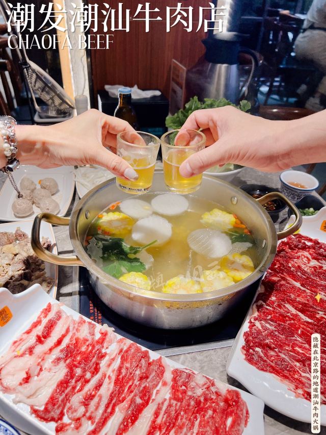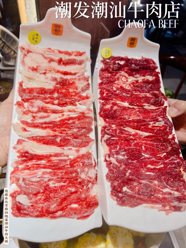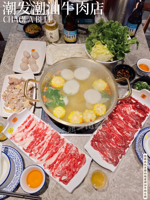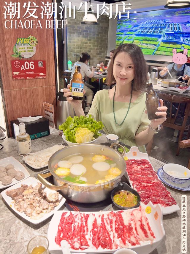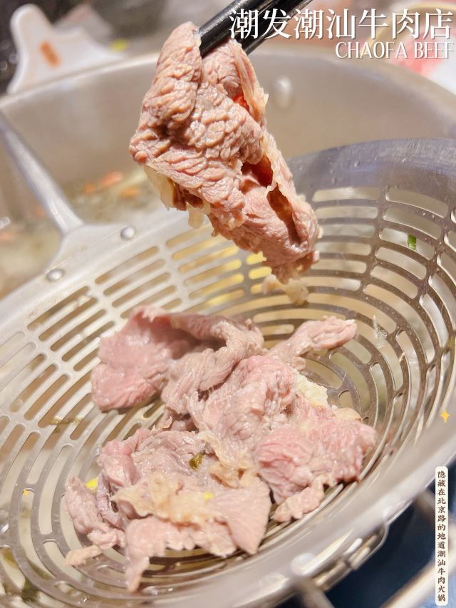 正牌一旧云吃下我的美食安利|这家潮汕牛肉店我要吃789次 没想到17年传记潮发升级更名为潮发,排队的人🙋♂️更多了!因为他家在宁夏有1400亩养牛🐮基地,从养、宰到运🚚,一手包办!3小时内牛肉🐂更新鲜! 潮发的分店🏬多,北京路店位于繁华地段,是我最爱😍来的!一座两层,位置舒适,大厅还有自助酱料🫙,diy更好玩! 🥣牛骨清汤:一眼丁真,不是科技活,是用🐃牛骨熬制,加入黄豆🫘、萝卜🥕降火,玉米🌽增甜。 🥩吊龙牛肉:质量很不错,雪花分布均匀,淖8秒时间,肉质嫩牛味浓。 🐂肥牛肉:脂肪含量丰富,是广州人最喜欢的火锅🍲食材之一,喜欢脂肪的味道。 🍡牛肉丸(熟):肉汁丰富,爽口弹牙,城中最好的牛丸。 🐮牛腩(熟):煮开就可以吃了,加上餐厅秘制的沙茶酱,棒棒哒。 🥬青菜:生菜和娃娃菜,新鲜翠绿,不错。 🍝生粿条:用汤水煮熟撒点葱花,倒入碗中,粿条不容易碎,淋上香油和酱油,真好吃。 餐厅🍴 潮发潮汕牛肉店(北京路店) 地址🚘 珠光路201-203号(北京路地铁站A出口南行60米) #潮汕牛肉店 #潮发 #潮汕牛肉火锅 #广州美食必食榜 #广州美食 #广州探店