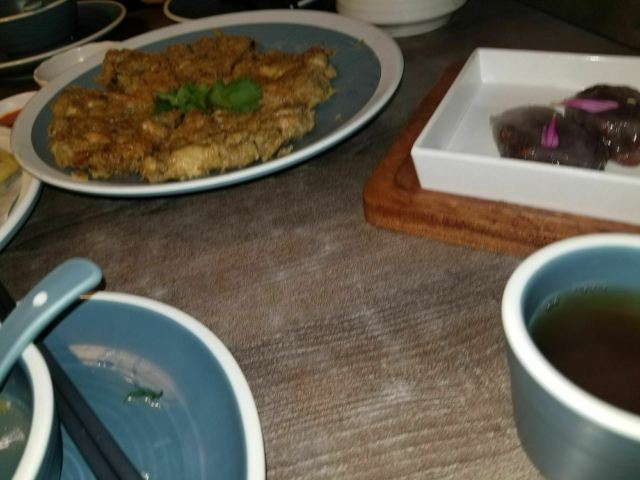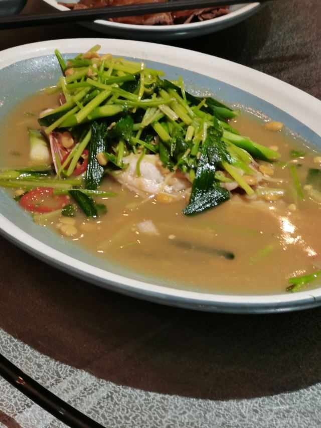 位置:在珠江道里面,最里面哦。饭点的时间停车位不太够!口味:潮汕菜,比较正宗。两个人点了四个菜一个汤。饱得不行不行的。[调皮][薄荷]环境:环境觉得一般。比较传统的粤菜酒楼的感觉。不精致,但卫生不错。只有厕所的消毒水味太大了,进去出来,立马头晕!这点非常不好[服务铃]服务:阿姨比较积极,人手也挺多的。随叫随到,也主要清骨碟和加水的性价比:性价比一般。都是冰鲜的,价格不算便宜。但在这地段还是可以接受的综合以上推荐指数