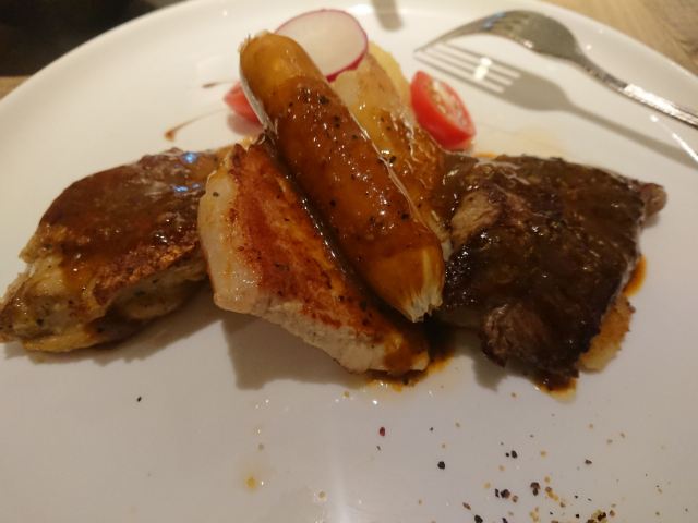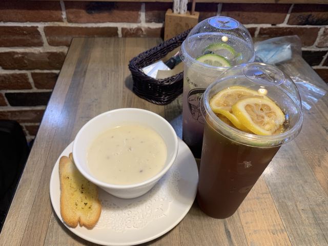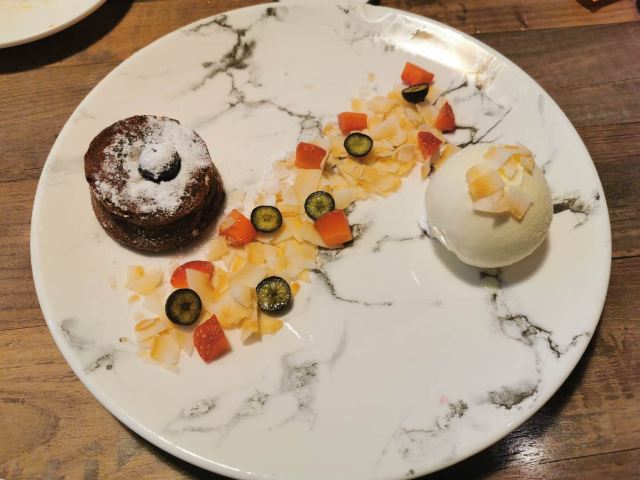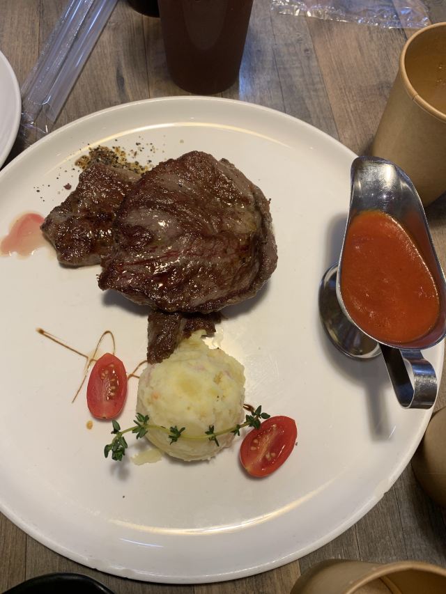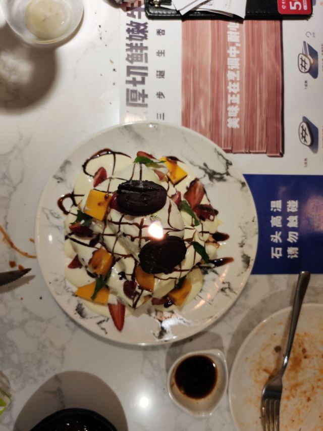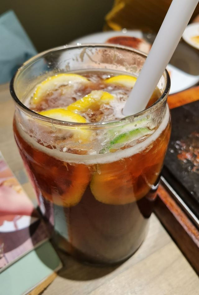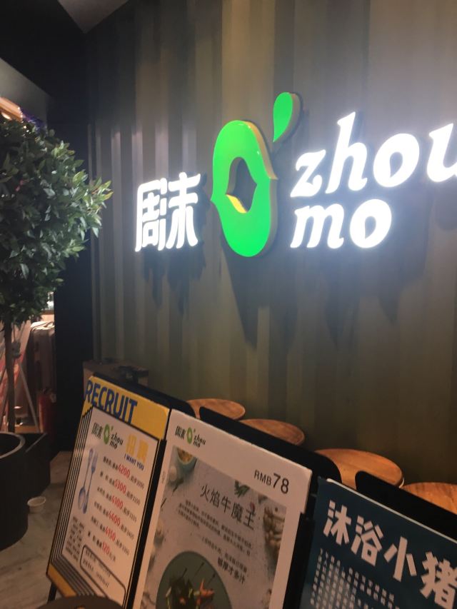 无意中发现广百8楼有一间卡朋招牌的餐厅(周沫是卡朋另一品牌?),一直挺喜欢卡朋的出品,决定试一试。 |手擂柠檬茶^有柠檬🍋味有茶🍵味,甜度刚好 |分段式芝士岩烤肉眼扒^铁板牛扒,香嫩嫩香 |蘑菇忌廉汤^很浓香的汤,味道好 国庆假期居然可以用团购劵,还保持出品,服务到位,极力推荐!