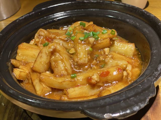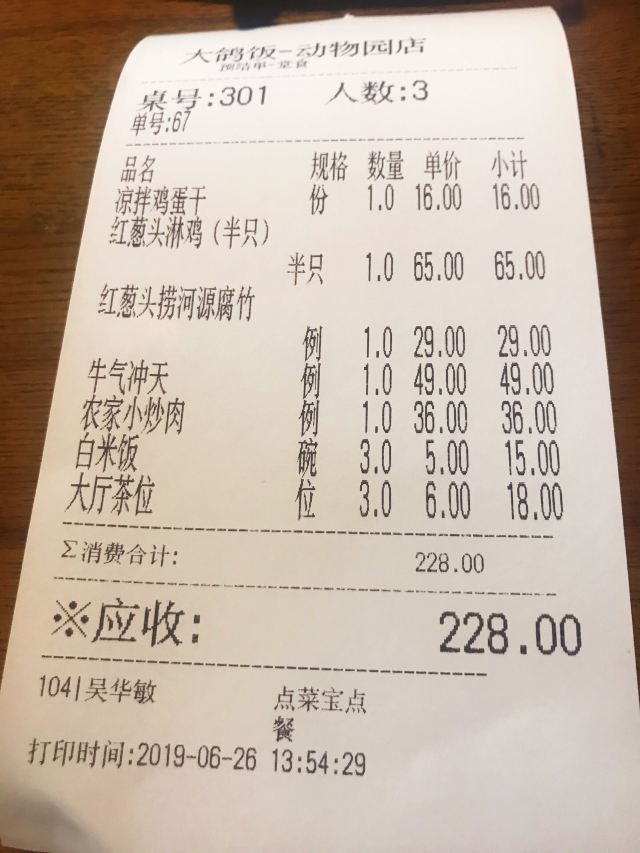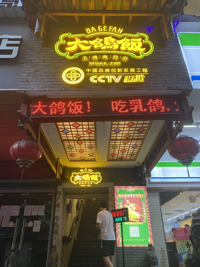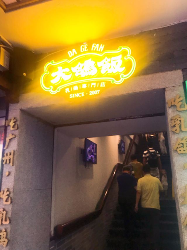 Da Ge Fan (Zoo)团购了一毛钱的乳鸽券来到这里,本来是想要到北京路店的,那边等位实在是厉害,想想还是过来这一家分店了。地铁五号线到动物园南门站,A出口出来向前走一点,基本上就可以见到了,某肠粉连锁店的楼上。这里的装修比较古色古香,环境还是蛮不错的,最好的我感觉是服务,从咨客开始,我们来到的时候还是需要等位,然后咨客就一直向我们端茶水过来,还有免费的零食提供。等位超过一定时间也是有送菜品的,一共有三档,大家可以留意一下。 {红烧乳鸽},原只上,这里的任何乳鸽都是原只上,然后马上就有服务员去到你的身边,问需要帮你剪开鸽子吗,可以一开二,一开四和一开六,也可以原只自己手撕。鸽子一剪开就马上流汁,香味扑鼻而来,香喷喷的乳鸽特别吸引人。我们一共吃了三只鸽子,两只红烧,一只盐焗。 {盐焗乳鸽},盐焗的鸽子同样推荐,个头和红烧的一样大,味道不一样,盐焗的味道很入味,鸽肉入味,就连骨头都很香。 {咸鱼茄子煲},非常好吃,这里的做法基本上和其他餐厅的一样,只是这里的颜色看起来没有那么深,我觉得这样好些,因为颜色太深也就是调味料太重,太咸了。茄子很嫩,没有吝啬咸鱼,我一个人就吃到不少,热乎乎的时候特别送饭。 喜欢这里送的小吃,三款小吃拼盘,分别有黄瓜、芥末海蜇和桂花莲藕,每一份乳鸽那里也配了两块桂花绿豆糕。