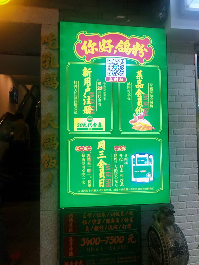 盐焗鸽,红烧乳鸽,鸽子饭,盐焗乳鸽,椰皇炖鸽子汤,鸡杂炒菜心,鸽肾饭,红烧鸽,大鸽饭,经典盐焗鸽,大鸽饭(小煲),串串烤鸽肾,鸽肾饭(小煲),菜心炒鸽杂,河源车田豆腐煲,上汤农家桑叶,鸽子鸽肾双拼饭,吮指手抓骨