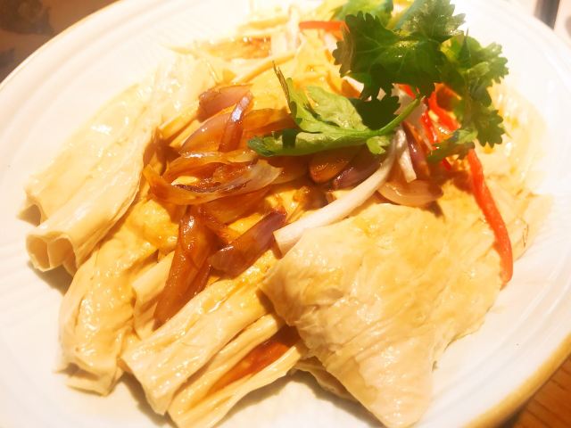 老实就奇大鸽饭(动物园店)位于环市东路501号,就在动物园地铁站C出口旁,附近还有公交车天河立交站,交通比较方便。 中午朋友在这里约饭。 餐厅门面不大,有三层,装修得古色古香。 因为他们是湘籍人士,没有点乳鸽等招牌。 【凉拌鸡蛋干】16元 实际是豆腐干,蛮香的,味道不错。 【红葱头淋鸡】65元 鸡肉比较嫩滑,不过鸡质一般,不够结实。 【红葱头捞河源腐竹】29元 分量一般,腐竹很薄,不入味。 【牛气冲天】49元 里面是土豆和牛腩,味道有点辣。 【农家小炒肉】36元 青辣椒炒得比较辣,五花肉炒得很爽很嫩。 米饭5元/碗,茶位6元/位,埋单228元,人均消费75元。