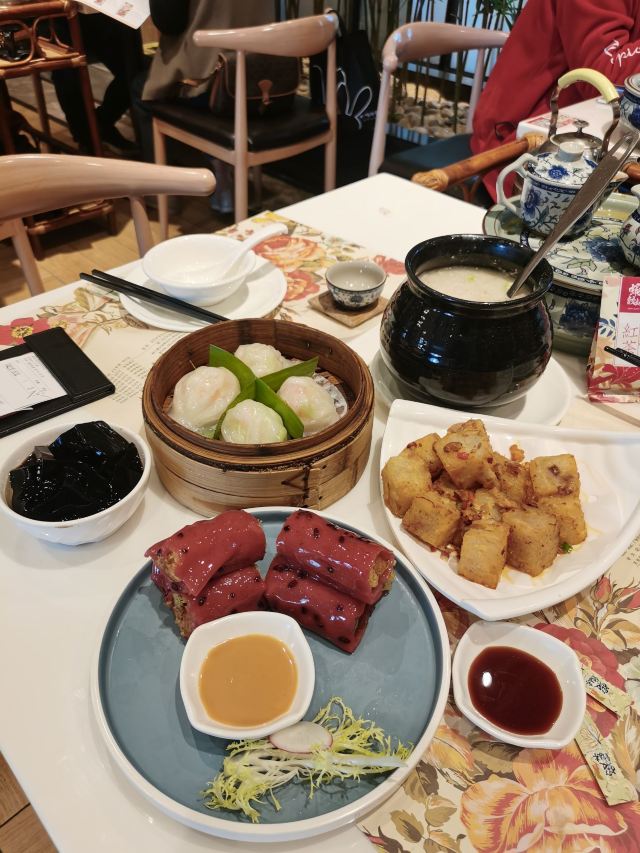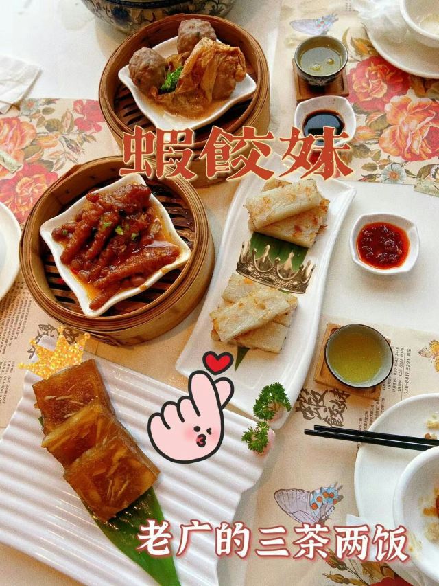 一窝小黄鸭,和味酱皇蒸凤爪,酱炒萝卜糕,香煎小米糕,招牌虾饺妹,红烧乳鸽,脆翻天烧鹅,雪花奶酪包,金网鲜虾红米肠,紫菜香煎墨鱼饼,头抽炒面,避风塘虾饺,蒸凤瓜,港式菠萝包,雪映流沙包,流沙包,乳鸽,烧鹅,濑粉,笼仔排骨蒸饭,菠萝油