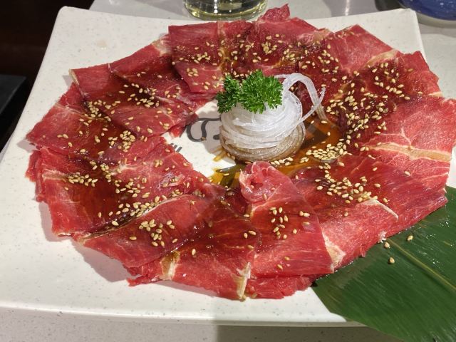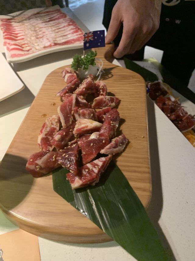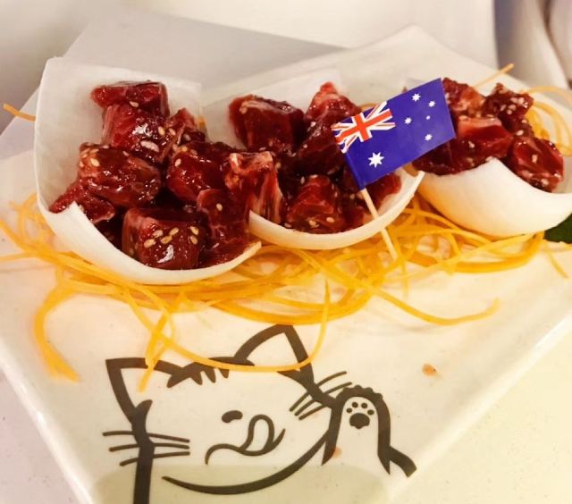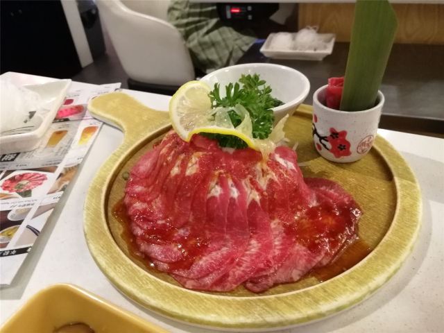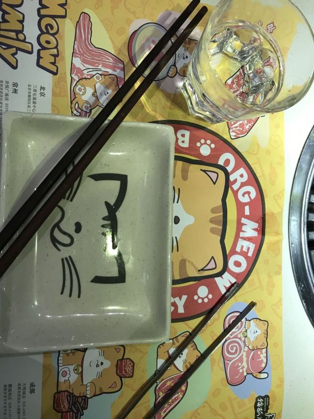 CC然粤海仰忠汇看到这家,号称进口牛肉,而且周三招行有50买100的半价券,就进去试试了。店内有很多搞气氛的活动,例如亲吻10秒送牛肉等等,店内气氛挺热闹。点了菜单上面推荐的几个肉,包括牛扒,牛舌等。不得不说,这家店就是吃气氛和猫主题的,而作为一家餐厅最重要的菜式味道,确实非常差劲。牛肉上来的卖相是不错的,也有人帮忙烤肉,不用自己动手。但是一吃就觉得踩雷了,牛肉是淡而无味的,店家配的酱料味道也是怪怪的,如果配点海盐味道就会提升很多。肉质也是非常差,肉不知道是烤得过熟还是怎样,老得咬不定,严重差评。最后买单的时候居然发现50买100的券只能用一张,而且平时的88买100券也不能叠加使用,等于是没有优惠多少。最后这顿可以称作难吃的饭居然在优惠后还要300,可以说是性价比非常低了,绝对不会有下次。