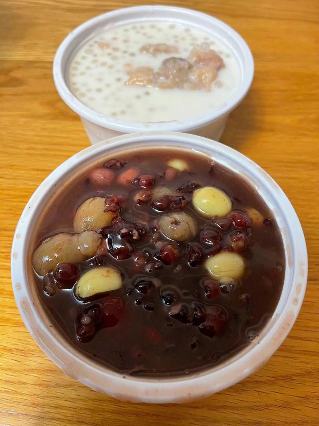 杏仁豆腐,芒果西米露,双皮奶,凤凰蛋奶糊,芝麻糊,姜撞奶,红豆冰,汤圆,杏仁奶糊,渣渣,芒果蛋奶糊,绿豆沙,红豆西米,三宝,十谷粥,燕窝杨枝甘露,椰汁西米露,香芋西米露,芒果西米捞,杏仁糊,芒果杏仁豆腐