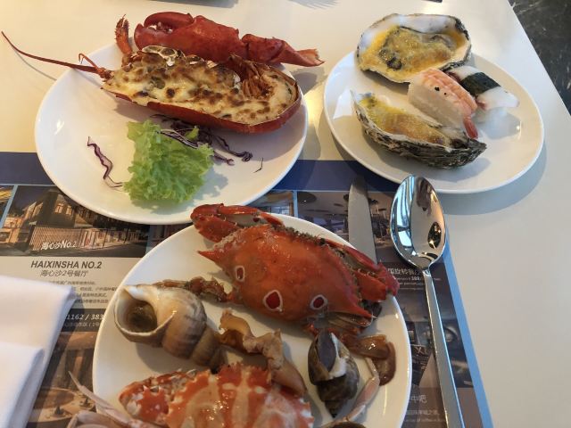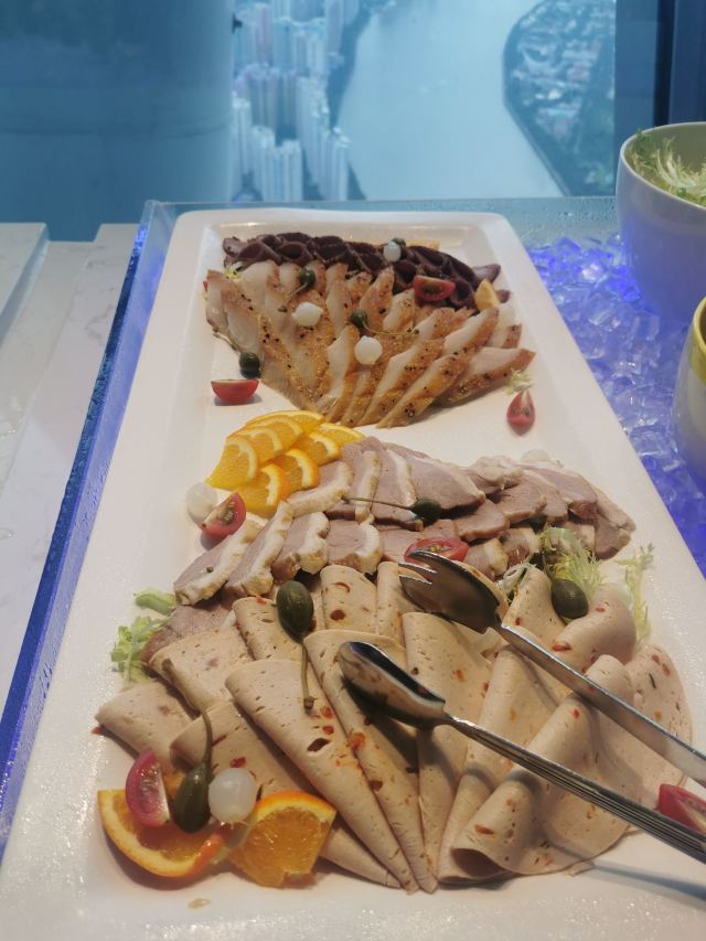 三文鱼,黑蒜烤生蚝,希鲮鱼刺身,羊排,火腿,黑加汁,木瓜,濑尿虾,蛋糕,牛肚,抹茶汁扒鳕鱼,蒜蓉粉丝蒸扇贝,刺身,火爆辣鸡香蒜披萨,开边蒸大虾,叉烧,水果,牛扒