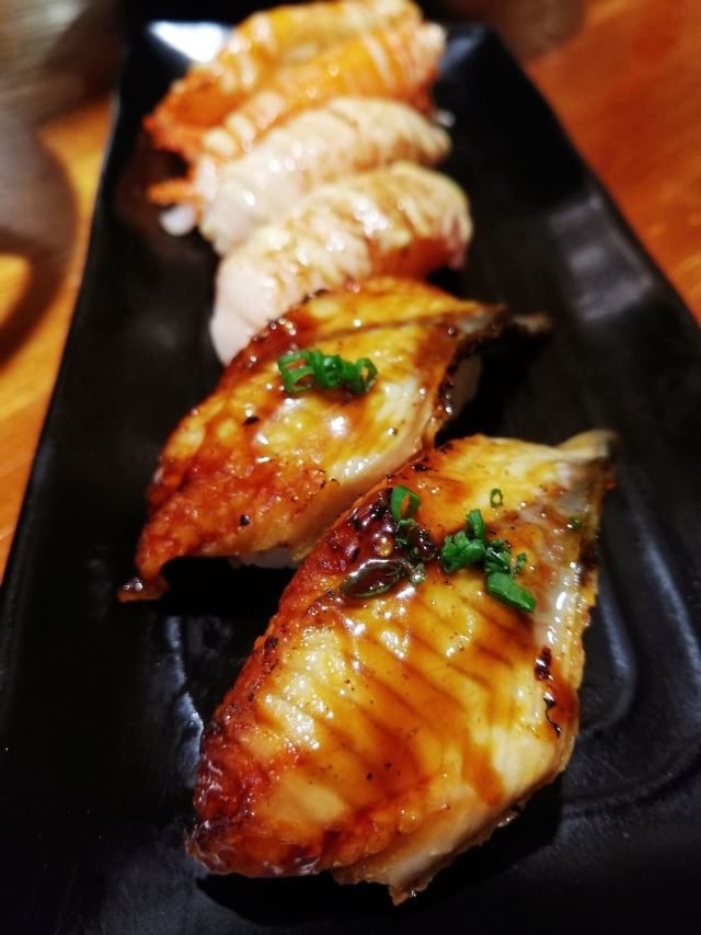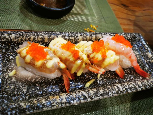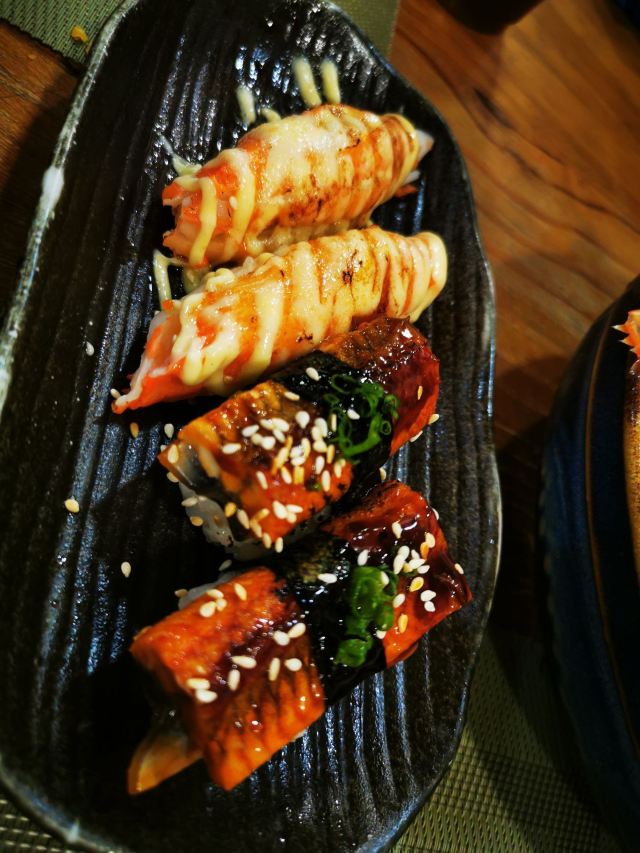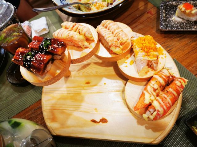 李li悠you之前带爸妈一起去吃寿司,吃得开心老板超友善服务员超给力。看来生意好是必须的,加油下次再去!先补写这次食评: #拾月帝皇沙律#有生菜芒果蟹子土豆泥,赞! #什锦刺身拼盘#这个刺身比较惊艳,因为大乡里平时很少吃鱼生,第1次吃这么大盘。大虾好大个好新鲜,带子三文鱼厚切赤贝都很好,赞! #寿司拼盘#是特色厚切鳗鱼寿司和蟹棒寿司,大大块的肉,好满足,赞! #拾月土豪卷#基础卷上面铺有三文鱼+脆脆片,口感丰富,赞! #清酒煮卜卜贝汤#材料十足的白贝加丝瓜汤,口感鲜甜,我们不浪费,还把白贝的肉肉全吃了哟。赞! #味增烧牛舌#第一次吃味增味牛舌,平时都是韩国式烧烤再沾点酱吃,现在味增味味道更香浓,喜欢,赞! #原味柠檬茶#现场新鲜柠檬榨汁调配,绝无花假,招牌柠檬茶,绝对要试,要点赞! #帝皇火焰拼盘#火焰系列,大爱,赞! #鳗鱼饭#鳗鱼盖饭,厚切鳗鱼8块,配有蛋丝和紫姜,酱汁也很特别,不同于外面的味道,太好吃了吧,赞! #法国鹅肝蟹子炒饭#老板说这是招牌炒饭,大大粒的鹅肝,材料十足,赞! #奇翠牛油果卷#里面是天妇罗,上面铺了牛油果,一物解一物,不会显得甘油腻,赞! #北极贝皇刺身#25元三块(相对有点贵),新鲜爽口,赞! #火焰四味虾#超满足的一餐火焰寿司,赞! 满赞,哈哈