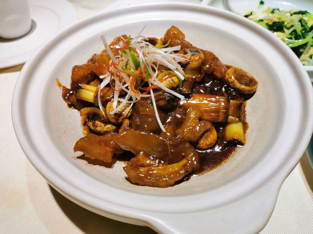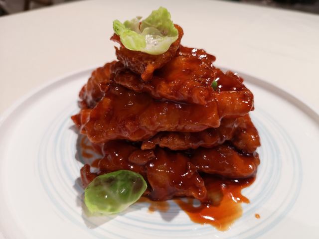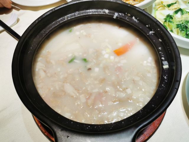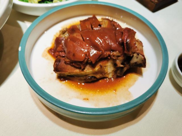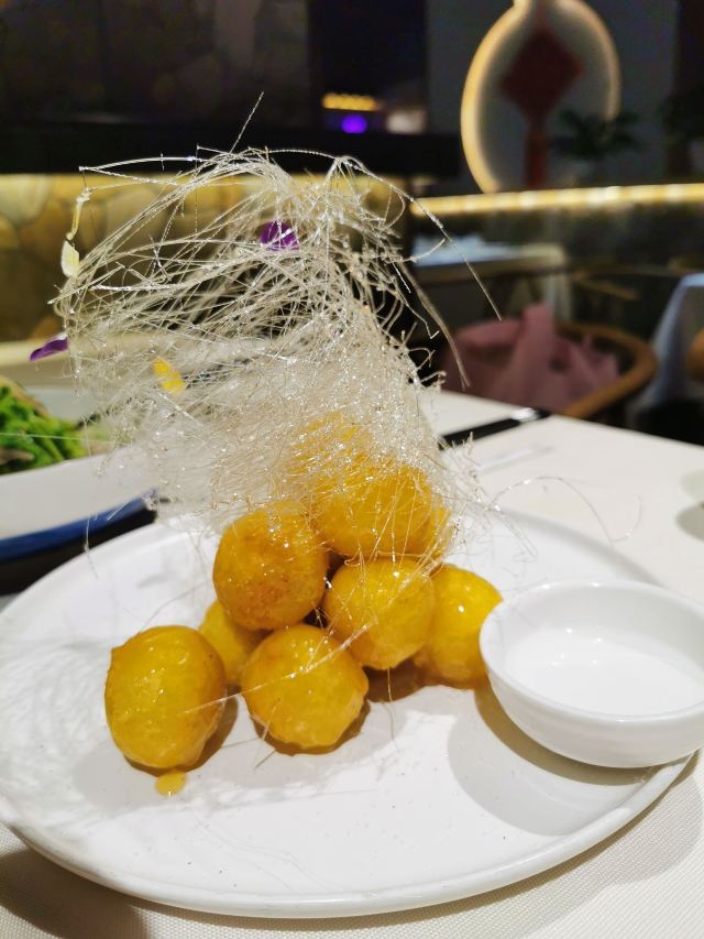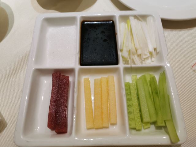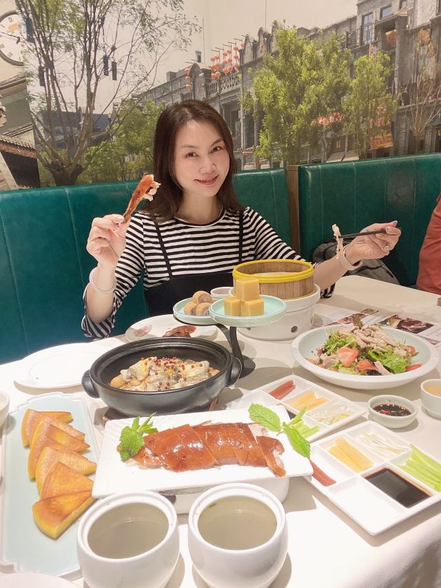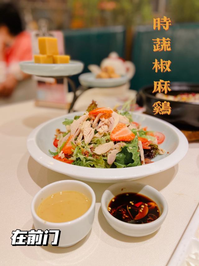 爱旅行的猪仔又来拔草在前门的招牌菜 这家店的出品挺对我的胃的,第一次过来吃了烤鸭觉得棒棒哒,这次过来试试其他招牌菜 糖醋东海大黄鱼 造型如飞鱼,有鱼跃龙门的喜感哦!糖醋鱼的调味不同于粤菜的糖醋鱼,和江浙的醋鱼倒有点类似,偏酸一点,吃这个记得上碗白饭,要不然可能酸得吃不下哦 拔丝芝士榴莲 是我第一次过来就心心念念想吃的东西,不过因为第一次想吃的太多所以没排上。这次过来是必点的了!上来的时候服务员就温馨提醒要尽快吃,要不然就不好拔丝了。摆盘特别漂亮,白砂糖做的雀巢状拔丝绝对是加分项。榴莲的用料也很多,一分钱一分货啦! 鸡汤煮豆苗 的灵魂是鸡汤,泡出来的豆苗味道鲜甜香浓
