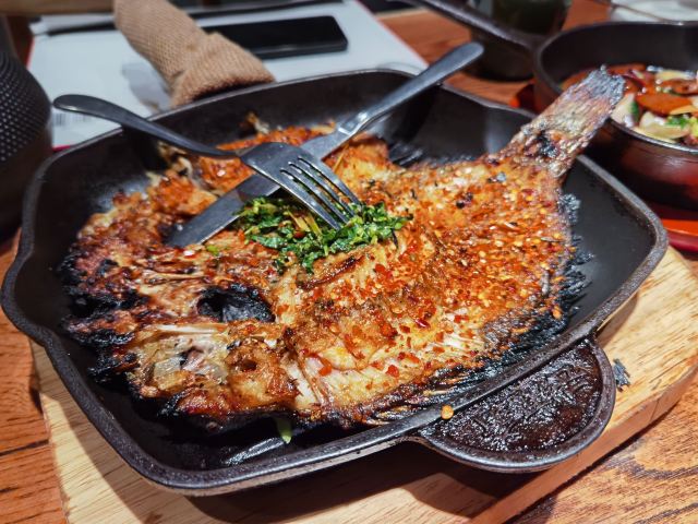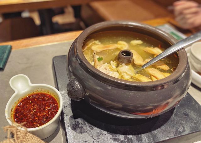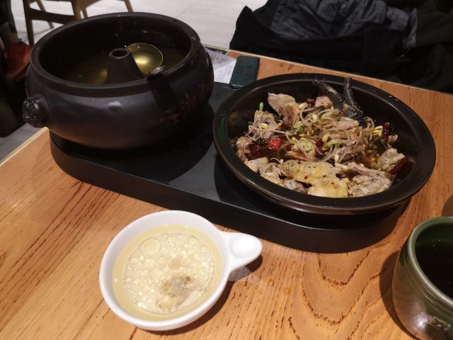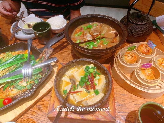 不错,挺好吃,好几个菜都不踩雷。 比较喜欢肉沫包浆豆腐和汽锅鸡,豆腐偏咸鲜,下饭。 汽锅鸡鸡汤很好喝,鸡肉还算嫩,份量刚好三人份。 破酥包里面糖腿好吃,其他口味普通了一些。 香茅罗非鱼和火腿牛肝菌中规中矩。