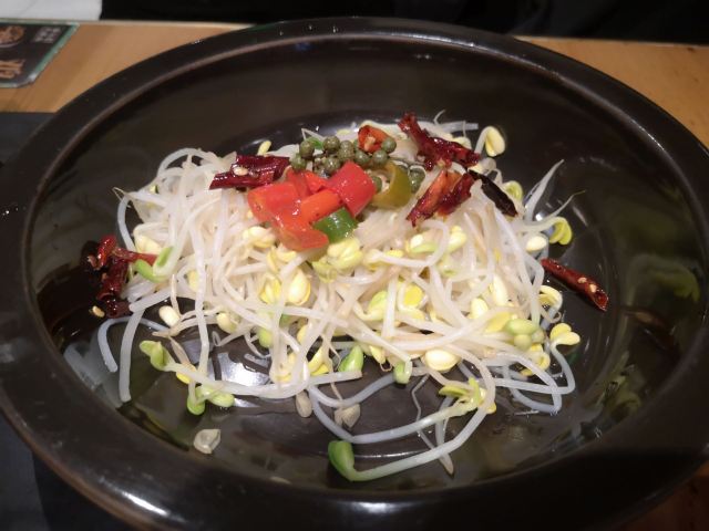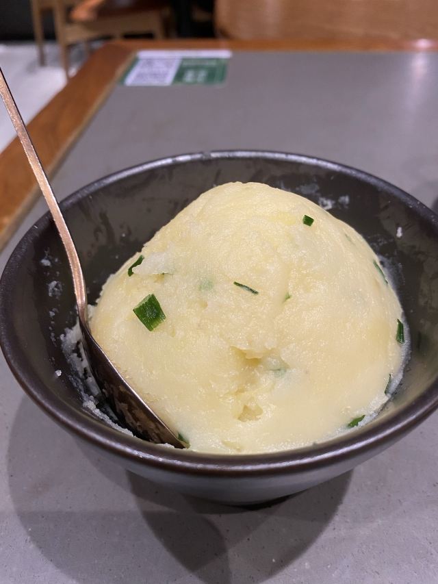 陌染MM团购了一份单人餐,来到了位于珠江新城高德置地春商场这里的分店,工作日的某天过来的,还没有到中午12点,餐厅里面已经有不少的客人了,看来生意不错。团购的是一份单人餐,之前买过米线的餐,非常不错,而这次的,感觉配菜方面可以重新再考虑一下,因为土豆泥本来就是饱肚子的,还要再配一碗米饭,然后黑三剁的口味是偏咸,用来拌饭的,对于胃口小的人,根本吃不下太多的主食,然后黑三剁也会变得浪费了。 {黑三剁},正如上面所说的,比较咸,而且比较辣,后来才知道,原来可以要求少辣,对于广东人来说,应该会更好一些吧。黑三剁其实也挺不错,肉末很多,还有酸菜,不像雪里红,可能是一种云南的野菜吧。 {土豆泥},一碗堆得像一个小山丘,很纯滑的土豆泥,还下了奶油,所以特别香,撒了葱花,如果不喜欢吃葱的,可以提醒不要放。 {黑糖豆花},这里的服务态度非常好,买单的时候只是顺便和服务员说了一下黑三剁很辣很咸,服务员马上说可以让厨房帮我重新炒一份,我说不用了,过了一会儿服务员打了单子上来,还顺便带了一碗黑糖豆花给我,说是送了,还说了“不好意思”。实在是太感动了,现在的餐饮竞争蛮大的,小小一个甜品拉动了我心,下次再去撑场。这里的豆花好吃,之前在别的分店吃过,喜欢上了,黑糖味不会太甜,豆花很有豆味。