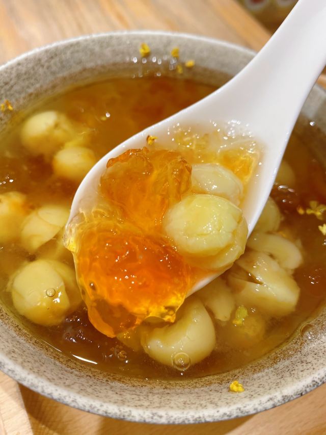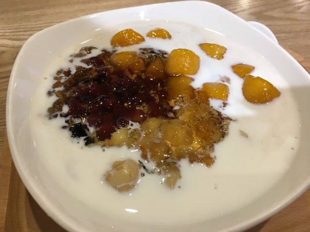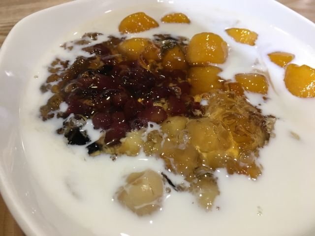 鲜奶桃胶莲子,有点甜,爱喝很甜的可以,