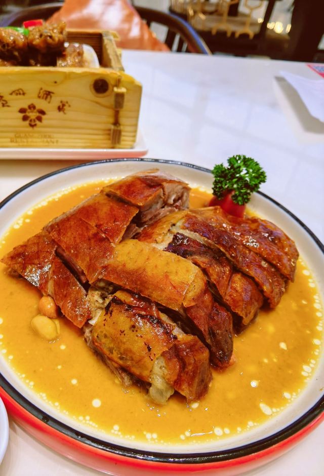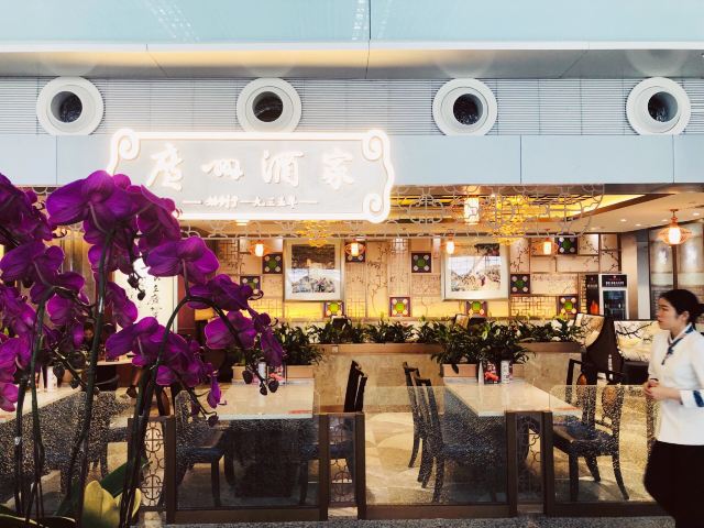 伊來万没想到机场会有广州酒家,岂有不大吃一顿的道理[调皮] [薄荷]环境: 虽然是开放空间,仍是在尽量精致的布置环境--桌椅茶座、鲜花背景,一看都是花了心思。 「乳鸽」 在广州那几天不记得吃过烤乳鸽,要离开了赶紧点一个不留遗憾。 鸽子火候合适,皮酥肉嫩,鲜美多汁,个头虽小,一点儿不干,口感滑润。 「客家红糖核桃包」 这属于吃之前觉得腻,吃起来停不了。红糖和干果配搭的口感醇厚扎实。 「至尊鲍汁叉烧包」 到广东不吃叉烧好像有点儿不太讲究,鲍汁调停,更鲜更有牵扯。 「干炒牛河」 写到这才发现,当时点的这几个很有代表性嘛[得意] 牛河咸鲜顺滑,游刃有余,牛肉软嫩弹牙。 [服务铃]服务: 态度肯定不如独立门店周到,没什么存在感