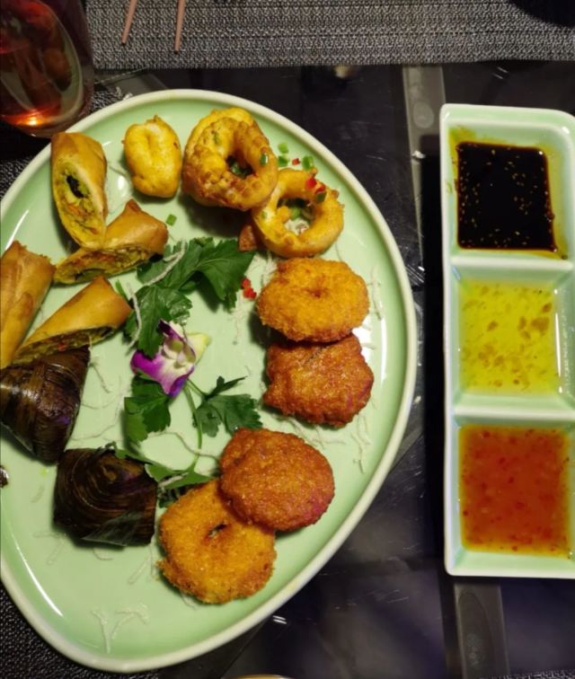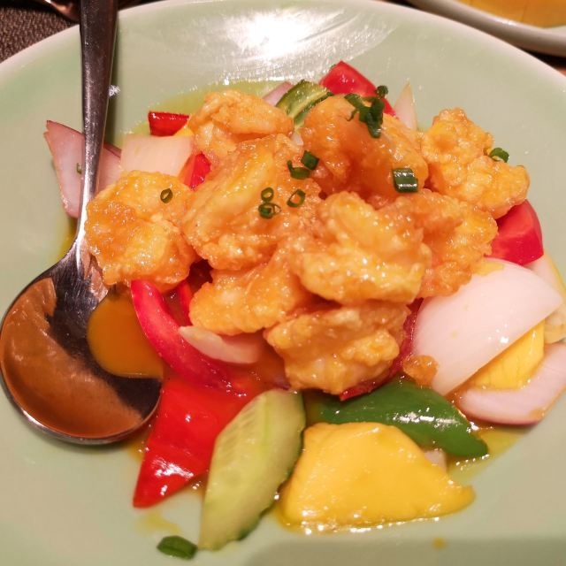 Sasha;)【口味】Mango Tree算得上是口味非常赞的东南亚风味餐厅,基本上每道菜的出品都颇有水准,炒通心菜、泰式蒸鲈鱼、海鲜沙拉、春卷等都值得种草🌿。 【环境】K11店的门面不大,餐厅装修风格一般,没有东南亚风情,但总体上干净整洁,还是很适合约会的。 【服务】如果没有提前拿号就要等很久才有位,餐厅外面没有很多座位,不过排队期间可以在商场里逛几圈,餐厅会提供装口罩的小袋子,这点比较周到。