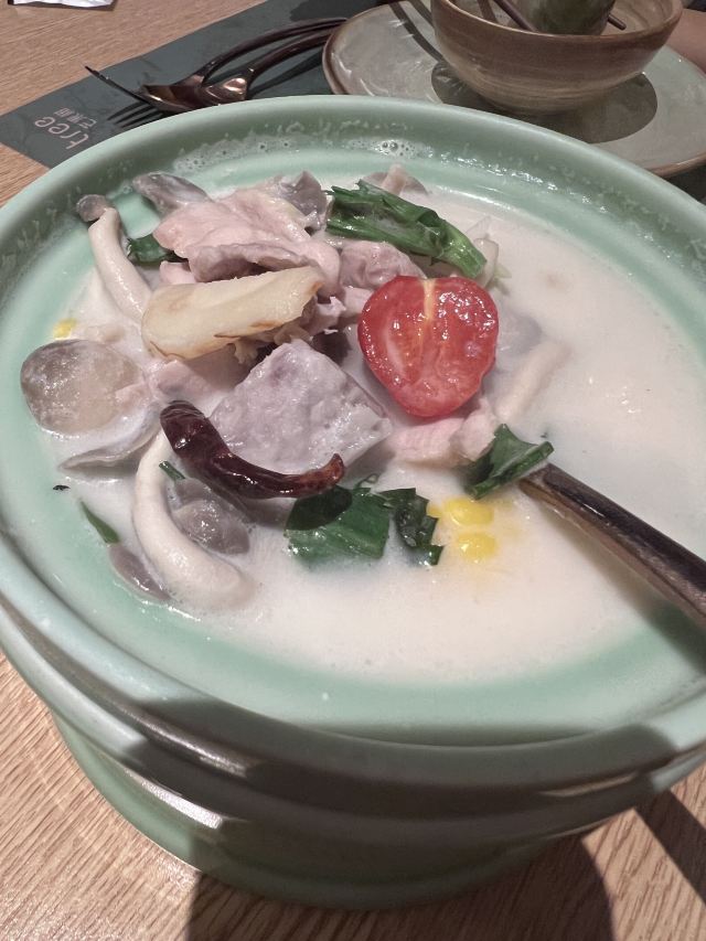 mango tree赴一场春日之约|隐藏在K11的人气东南亚菜馆 小周末逛逛广州K11,偶然发现芒果树餐厅人气爆棚、氛围感在线,晚餐🍲有不少客人。 户外花园座可以俯瞰珠江新城夜景🎑,大厅位置有点挤,不算很符合米其林的招牌 推荐: 黄咖喱牛腩浓郁下饭,椰汁鸡汤温润鲜香,甲抛猪肉碎配生菜包清爽够味,烤猪颈肉米纸卷外脆里嫩。 原创艺术冰箱贴很有纪念意义。 小遗憾:茉莉香米饭带馊味影响体验,泰式香茅柠檬水6元性价比一般。