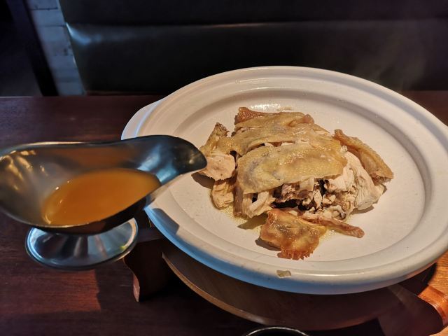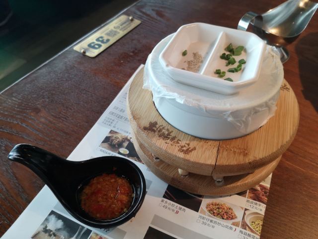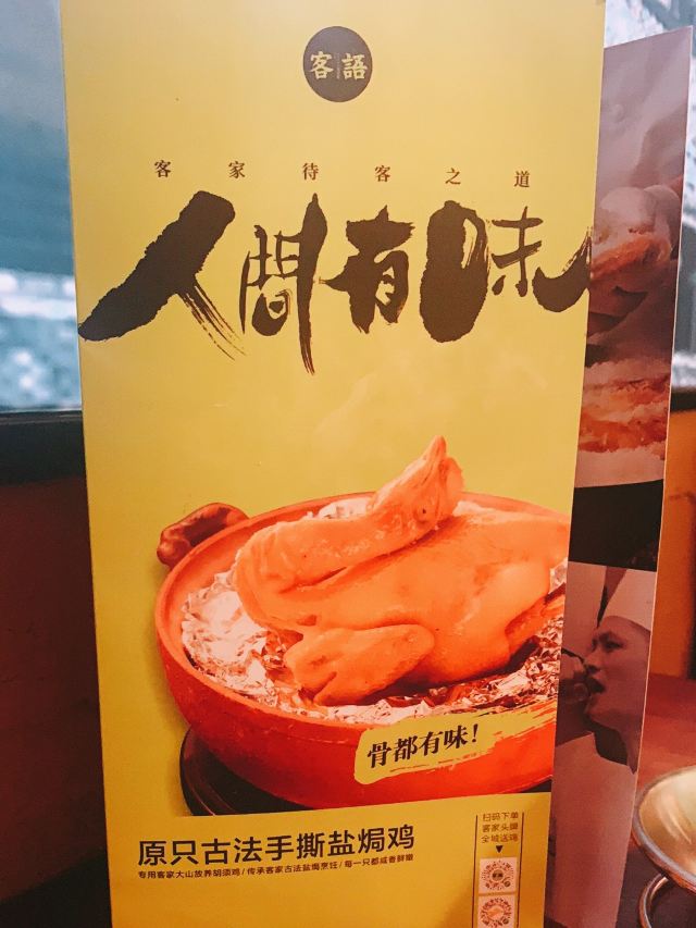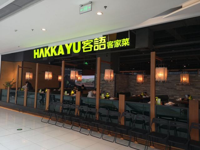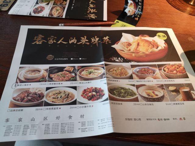 陌染MM中秋节那天出来吃饭,来到了这一家餐厅,这家分店位于北京南路的一栋商业大厦七楼,相比隔壁的其他餐厅来说,它的等位情况已经好很多了,而且看到有标明,在节假日的繁忙时段,要求客人用餐时长是一个半小时,这样也挺合理的。等位还算挺快的,餐厅的布置以客家围屋为主题,服务员的服务态度很好,都很热情,上菜速度很快。平常好像有会员制吧,具体优惠自己问问,我那天遇上节假日用不上,也就没有考虑会员了。 菜品的价格比较大众化,以20-40元一份的幅度为主,当然10多元的和几十元一份的菜都有,丰俭由人。这里的菜说它不贵,是因为它比较真材实料,不会说配料一大堆,真正的肉类却很少的情况出现,例如:客家手撕盐焗鸡,我点了一份半只的,鸡种不是很大,但是拆出来的肉也算是蛮多的,而且鸡很入味,无论是在吃着鸡肉,还是允着骨头,都可以品味到调味刚好的盐焗味,还配着上来一份盐焗汁,喜欢吃咸一点的客人可以多加一些。 客家焖全猪就是啖啖肉了,全猪也就是猪杂和猪五花肉各有一些,五花肉已经焖得非常入味、非常软,牙齿不好的也能吃,猪杂有猪粉肠、猪心、猪肝,每样都有一点。调味方面还是下了胡椒,客家菜好像都喜欢下点胡椒,看来冬天吃更好了,胡椒可以暖身。另外还点了饮品,一大杯10元,价格方面的确有优势。