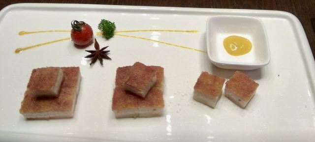 黑毛猪烧肉,青芥末虾球配香芒酱,樱桃鹅肝,石窝海胆海参八宝豆腐,招牌响螺汤,妈湾港酱汁花螺,手剁土猪肉饼蒸膏蟹,洲际虾饺皇