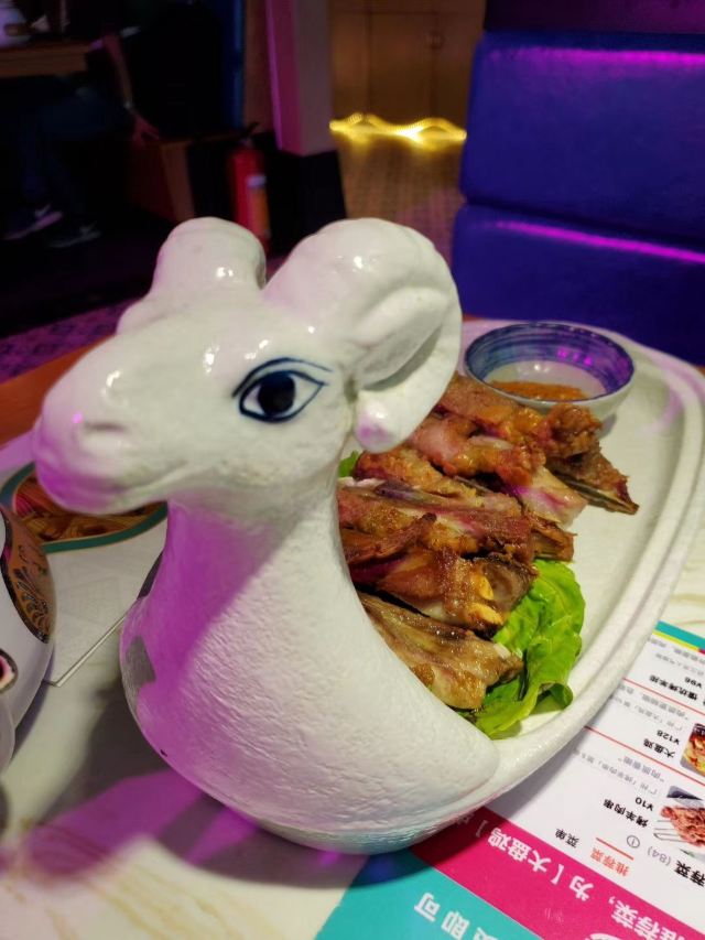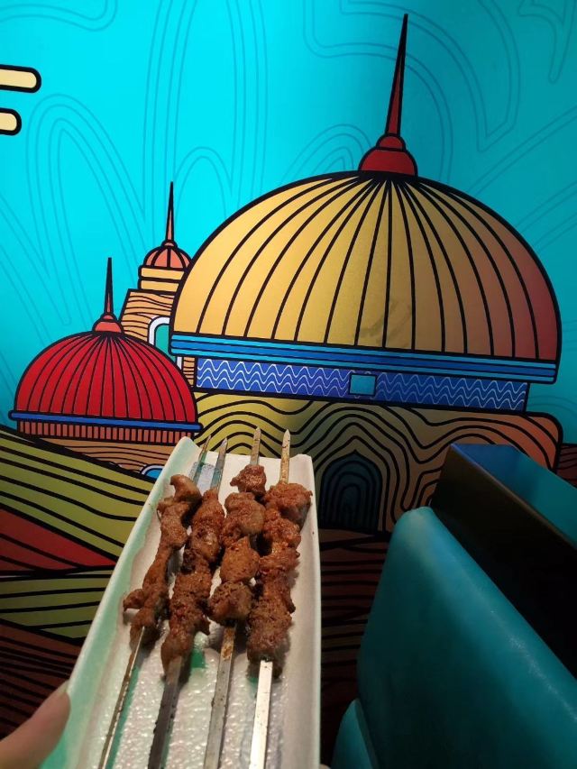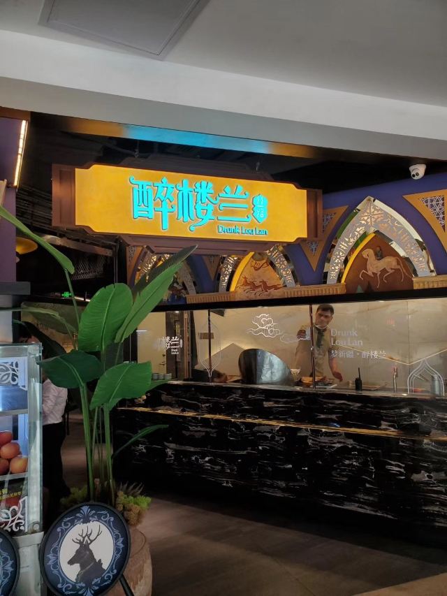 Drunk LouLan两周,分别踩场两家新缰餐厅哈哈,后来才知道居然有血缘关系,懒的我决定二合一,写 环境比较好的醉楼兰。 高德置地春商场的醉楼兰,经过好几次,这次探店,才发现原来里面这么大的!门面还真 看不出来。环境在广州的新缰菜餐厅中算是高大尚的级别了,每桌头顶都有盏吊灯,氛围很好 ,也让出品看来起来更有食欲。 出品推荐:招牌羊肉串、馕坑烤羊排、新缰奶茶。白宽面也好吃,但必须配在新缰大盘鸡那捞汁来吃,大盘鸡有点辣,倒是开胃。羊肉串是必点的,肥瘦相间,香~但还是怀念在新缰吃时那一长柄都是肉肉,会更满足。奶茶喝的是情怀,奶香味足,但和当地喝的风味还是有点距离,不知道是不是水质的问题。 提前订位,落坐窗边,除去优惠人均八九十左右吧,性价比OK。