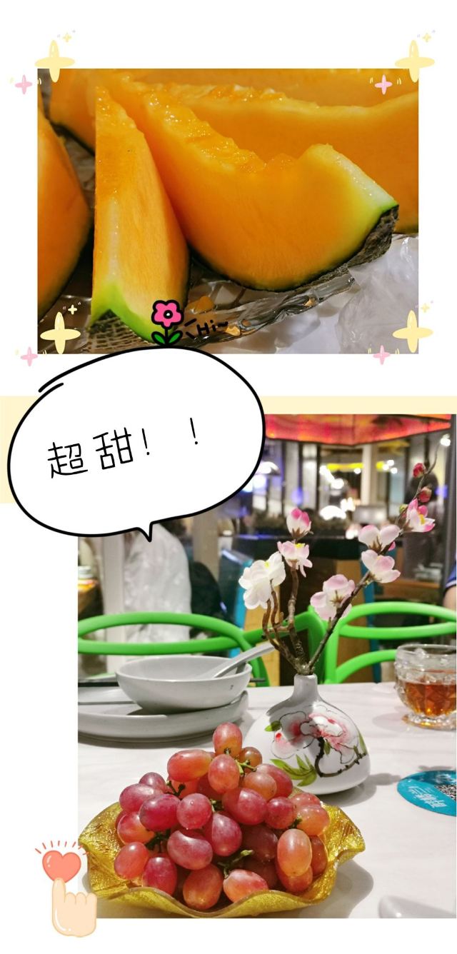 Emily慧慧地点:高德置地春广场5楼,扶手电梯旁 环境:非常有新疆地方特色的装修,服务员也有新疆特色打扮 感觉很新鲜! 菜式很多,只记录印象深刻的部分咯! 【新疆大盘鸡】大盘鸡味道偏辣,但是鸡肉肉质不错,入味,好吃。 【羊肉串】和【羊排】店家贴心的帮我们切开,大口大口肉的感觉真好。这家的羊肉不膻,但我还是喜欢膻的[呲牙] 【丁丁炒面】面是手工捏的,所以非常有嚼头,配上番茄汁非常好吃! 【提子】和【哈密瓜】听说都是从新疆空运过来的!真的特别甜特别好吃,超赞 中间有2次新疆特色表演,载歌载舞,很是热闹,吃饭吃的很开心,不会冷场哦!服务也很好,很贴心,点赞啦!!