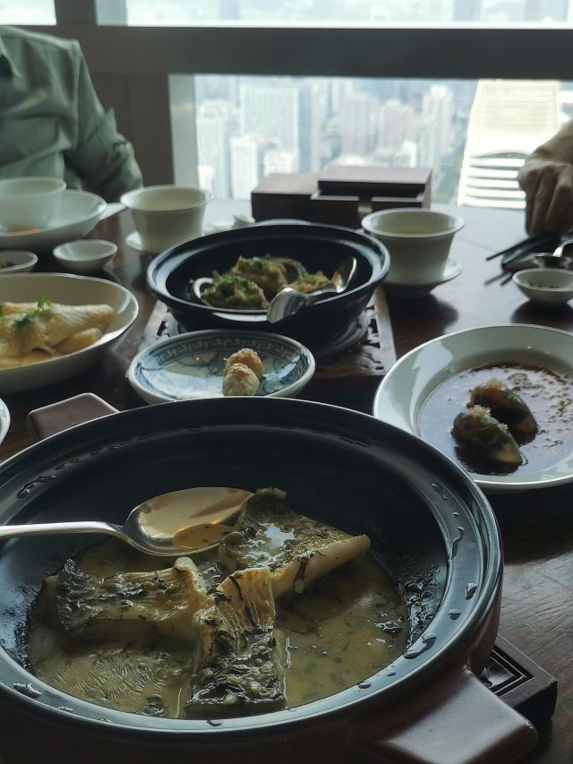 餐厅位于酒店的六十八层,通透的落地窗外可尽览都市美景,典雅的室内装修带来浓厚的中式情怀,令人赏心悦目。这里主打精品粤菜,餐单推陈出新,道道菜品精美别致,诠释出粤菜精髓,宽敞的开放厨房可观烹饪过程,值得体验。
