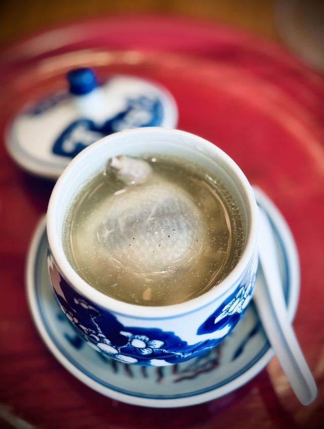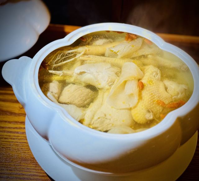YUE JING XUAN春天,被奖哥的这一煲人参花胶鸡汤唤醒。 很多人质疑奖哥的菜不够“漂亮菜”,但我以为,粤西的乡土风味正是奖哥的烹饪底色,所谓“粗菜细做,细菜粗做”,烹饪也是一种伤害,过度烹饪是食物的抑郁症。 烹饪是科学,美食是艺术,科学有真理答案,艺术没有是非对错。 奖哥下个月就要去英国推广粤菜了,他由始至终一直留在广州柏悦酒店的悦景轩,他的菜只按着自己的切身感受慢慢成长。斤斤计较是和他人卷,患得患失是和自己卷,不卷了,也就松弛了。 如果烹饪思想趋同,那么做出来的就都是预制菜。