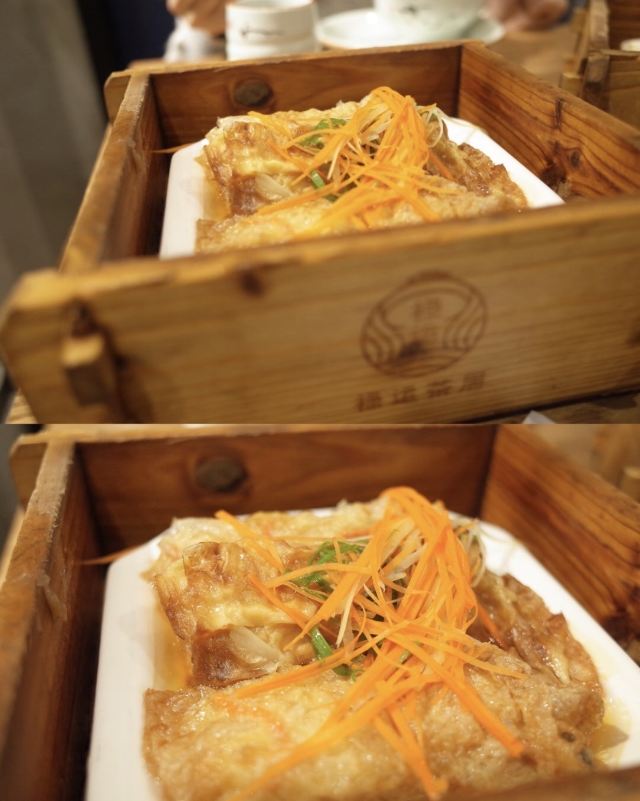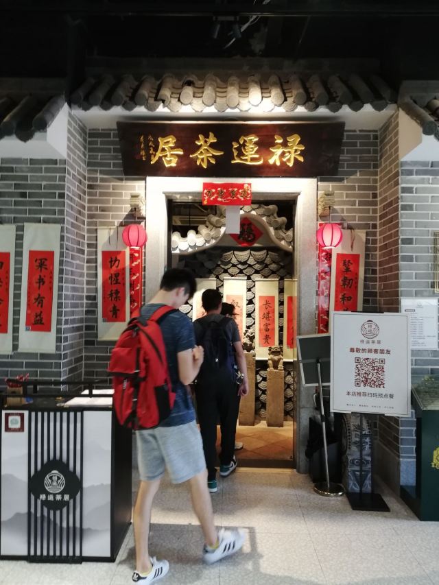 唔系老实晚上,朋友约我到禄运茶居•拔草餐厅(正佳广场店)小聚。 这家店位于天河路正佳广场五楼广正街内。幸好我们是六点钟前到达,否则就要在门口排队等位了。 餐厅不算非常大,装修得古色古香。一落座,服务员就会过来上茶,并递来菜单。这里可以扫码下单。 禄运参汤虾饺 28元,这是禄运茶居的招牌菜。用彩色的汤匙状的小碟子上来,有三只。参汤味道很浓,还有不少花旗参片。虾饺皮薄馅多,里面有四五只大虾,肉质结实爽口。 飘香榴莲鸡蛋挞 18元 心形的盘子内有三颗鸡蛋,蛋内装着榴莲蛋挞。蛋挞的榴莲味道浓郁,能吃到溜莲肉。这个点心颜值高,又好吃。 酱皇豉椒凤爪 25元 凤爪肥大淋香,非常入味 香煎腊味萝卜糕 15元 三大块的萝卜糕,煎得微黄,能吃到腊味粒和萝卜丝。 禄运腊味蒸饭 18元 满满的一大碗饭,里面有腊肠、腊肉、青菜,米粉香软,吸收了腊味的油脂和香味。 服务员小哥哥小姐姐笑容满面,热情周到。