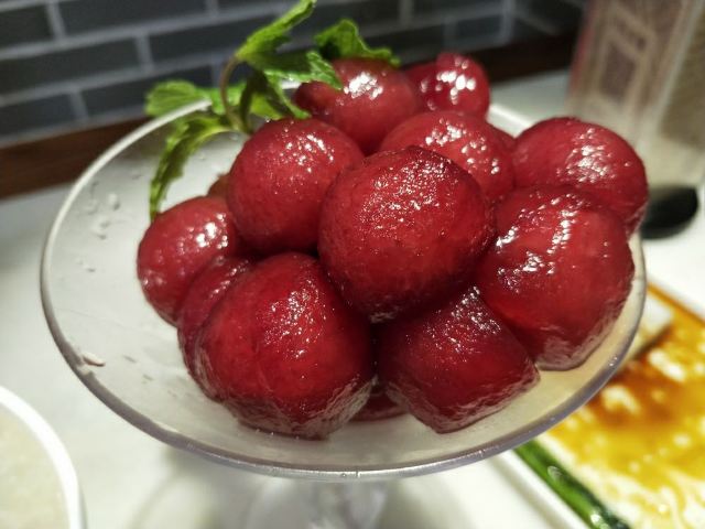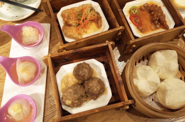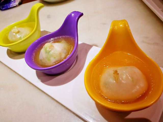 我是水晶【口味】禄运茶居在广州有好几家分店,是广州有名的粤式点心连锁。这家分店位于正佳广场五楼的广正街里面,光顾的人很多,时常要等位 店里面的装修很古色古香,用了不少广东元素。 禄运参汤虾饺皇,是这里的招牌点心之一 。虾饺用了三色小勺子,连汤带饺一起上,虾饺皇个头真够大,里面的虾仁也很大只,分量足,也很弹牙 紫金葡萄贵妃球,外观上看有几分像葡萄,吃上去冰冰的,也确实吃出了几分葡萄的味道。实际上是用煮过的冬瓜弄成一个小圆球,在淋上葡萄汁,用冰镇过。吃上去口感冰冰的带点酸甜,很适合夏天解暑消腻,很有创意 还有酱香暖胃猪肚,芝麻斋肠,枸杞火滚猪润粥等,出品都不错。