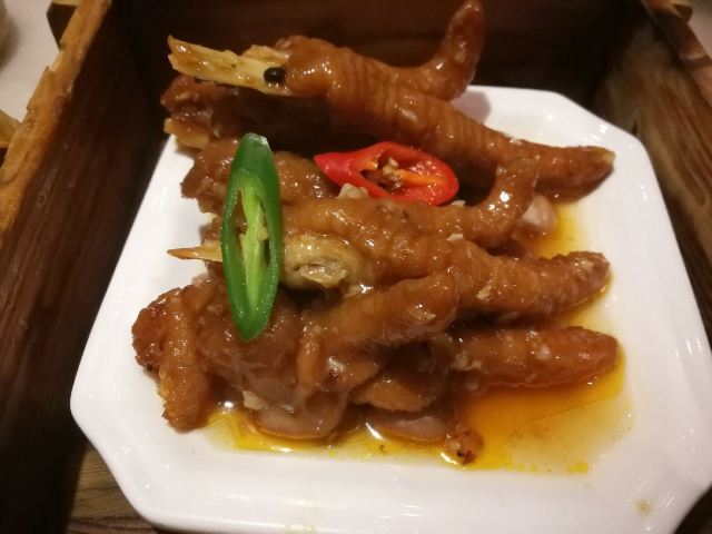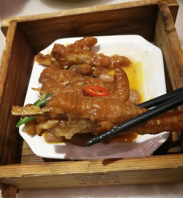 陌染MM来到了正佳广场五楼广正街里面的这一家禄运茶居分店,周日过来的,最近实在是很少人出门,所有茶居不用等位,桌子随意坐,不少位置可以选择。记得以前也来到这里,一到饭点,早早就已经开始叫号等位了,我到现在都还没能吃上,哈哈,现在最合时。 这里是吃粤式茶点的,古色古香装修的茶楼,坐的也是红木式桌椅。点心全部是即点即蒸、即做,很新鲜,热乎乎的点心特别吸引人。这里的服务不错,服务员们都很热情,上菜挺快的。 {红米肠},份量很大,一份有六大块,红米肠粉皮绵绵糯糯的,中间夹着大大粒的虾仁,虾仁并排两行,加入了韭黄吊味,很香。配了酱油和花生酱,我不知道为什么会配花生酱,有些餐厅配,有些不配,但是我感觉好像蘸了花生酱更地道吧。 {禄运虾饺皇},一笼有三个,比其它餐厅的虾饺有四个少了一个,但是每一粒虾饺的个头都很大,非常饱满。虾饺里面的用料很足,满满的虾仁,很爽口,新鲜,外层的皮不会很厚,有点点粘粘的,不错。 {黑椒牛仔骨},放得有点散的感觉,好像只有三块肉肉吧,不多,牛仔骨还是比较嫩的,酱汁也不会太多,黑椒的味道刚好,不会太浓。 {酱皇豉椒蒸凤爪},不错,凤爪有很多只,蒸得很入味,底下只是垫了几粒花生而已,满满的都是凤爪,赞。