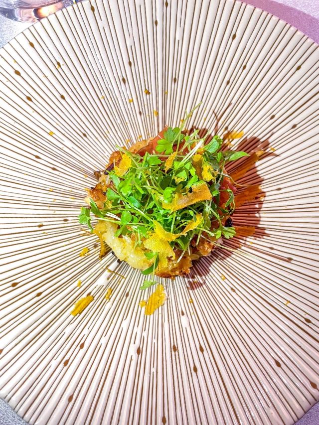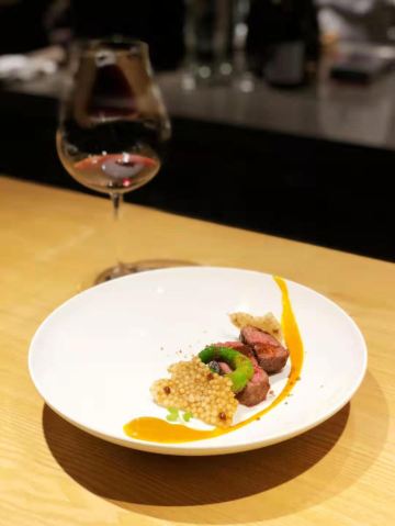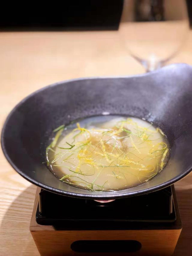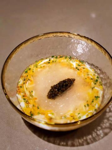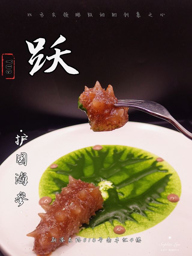 爱鱼酱小锦鲤黑珍珠二钻粤菜跃·Yuè上味蕾的体验 🌟跃是现代粤菜的一个里程碑 融合世界级的食材与烹饪技法 再打破陈规自我创新自成一系 🤩既保留了传统的味道 又赋予食材新生命的吃法 ♥️约会被带到这家连续两年荣获 🌟黑珍珠二钻 🌟米其林餐盘 🌟凤凰网金梧桐一星餐厅 🌟国内第一家(世界第58家)唐培里侬香槟王餐厅 让人翘首以待的到来 ✅朋友提前预约位置 到店已经有服务生专门接待 随着银色大门徐徐打开 诺大的空间昏黄的灯光 🎶悠扬的音乐氛围感很好 桌子的距离适中 私密性好还有专人服务 🧾菜式以完整的套系呈现 从前菜开始汤水到结尾的甜点 全程由厨师专门讲解 👀让五感领略跃动的创意美食 [爱心]印象尤为深刻的 🌟鱼子酱卤水鹅肝 黑色晶莹剔透的鱼子酱 底下是细腻的鹅肝酱 顶部还有几颗黑醋 口感绵密甘香吃出了卤水风味 🌟吃完还有彩蛋 铺垫的黑色石头竟是白云凤爪 Q弹爽滑与石头硬冷并不相同 打破了食物的原有形态 赋予菜品的不同想象 🌟护国海参 来自大自然的馈赠 与此同时沉浸式的体验开启 美丽洁白的响螺跃然桌上 音乐也随之变为海浪声 音形意味一下子就到位了 海参以盘根结枝的状态呈现 绿色的菠菜汁虾酱点缀成了画面感 海参内里还裹着海胆大黄鱼籽口感层次鲜明 🌟豉椒牛肉🐮 中西结合的食材 磨碎后的豆豉散发着香气 轻轻抹在牛肉的外表 焦香脆的口感让人惊喜不已 牛肉肉质鲜嫩搭配青椒红椒 丰富的口感让人惊喜 ⏰三小时精彩纷呈的味觉之旅 👅让我们味蕾感受了珍馐百味 🧾跃跃欲试的各种菜式尽收腹中 🏙沉浸式体验感真是非一般餐厅能比拟 💛结束时还以一杯英红九号以及鸡仔饼作为ending 感受到粤菜的传承与创新的文化理念 🌟店名:跃·Yuè现代粤菜料理 🚩地址:新港东路618号南丰汇4楼