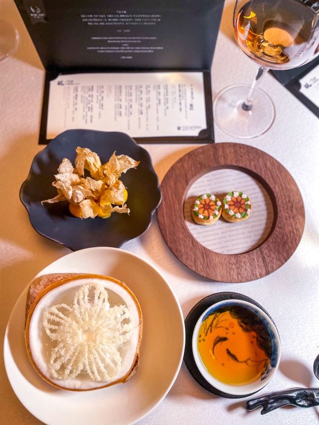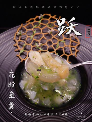 如意探店花非花·雾非雾‼️现代粤菜的传承与颠覆💡 新年啦🎉趁机让老公奖励一下努力工作认真生活的自己😆! 继【潮跃】之后,来打卡一下跃三步曲中的另一家——【跃·Yuè现代粤菜料理】🍝 跃·Yuè,既是跳跃的“跃”,又是粤菜的“Yuè”…意在以跳跃的思维,研发出创新的现代粤菜✨ 传统粤菜➕现代烹饪手法➕世界各地的食材=传承经典而又不断颠覆食客的认知~这种充满未知和惊喜的美食探索体验实在太有趣了🥰 🟠花非花——茅台是甜的⁉️ 头啖汤乍眼一看差点以为是茅台… 喝下去却发现清甜滋润~ 原来竟是广式传统茅根汤😄! 🟢雾非雾——石头可以吃⁉️ 鱼子酱餐盘中那不起眼的石头, 竟然是个精心准备的惊喜“彩蛋”🎉! 具体是什么?等待你们自己探秘噢😝 只能说,味道太对我胃口了! 用餐过程中体验感非常好💯 全程都有专人讲解每一道菜品🍝 最令我印象深刻的是: 上主菜之前, 为了营造大海的氛围🌊, 竟会特地在餐桌上摆上海螺装饰🐚… 同时播放▶️轻柔的海浪声音, 再通过菜品中的虾酱营造出海的味道~ 从视觉👀、听觉、嗅觉、味觉上给食客带来层层递进的感官体验💝! 就连菜品中的调料都经过精心设计和创新,以一种完全意想不到的形态出现在面前~个中用心可见一斑👍🏻 ┅┅┅🟡餐厅荣誉🔵┅┅┅ ✅2021-2022连续两年荣获“黑珍珠二钻餐厅”🏅、“米其林餐盘奖”🛎️等 ✅Dom Pérignon Society在中国内地的首家(全球第58家)成员餐厅,其创办人唐培里侬修道士(Dom Pierre Pérignon)有“香槟之父”的美誉🍾🎊 ┅┅┅┅┅┅┅┅┅┅┅┅ 🏠跃·Yuè现代粤菜料理 📍新港东路618号南丰汇4楼 🈺18:00-22:30