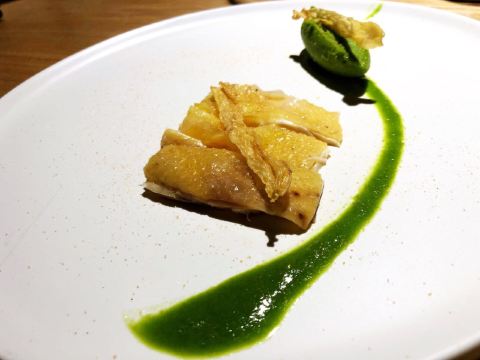 饭醉分子闫涛麦广帆大师广州寻味之旅第二站 大师之所以为大师,便是因为承前启后的功德,承前者,扎实充沛的基本功,启后者,有创新和传承的历史使命感。 麦广帆大师当年被人尊称为“鲍鱼王子”,但在麦大师的餐厅里并非只依赖鲍鱼这一项技能打天下,创新和学习是麦大师不断发展的警醒自律。正因如此,麦大师广州风味之旅的第二站我们来到了更加前卫和富有探索精神的“焯跃”。 提到“跃”,就得提喜客彪哥,彪哥进入餐饮行业从喜客喜宴这样中归中举的宴会酒楼出发,在投资餐饮的人生历练上,彪哥也打造了禄鼎记和大龙凤这样的快消品牌,但他内心深处的终极理想是要开创一种属于自己风格的粤菜新定义。 “跃”就是一种像粤菜致敬而又完全重组创新的餐厅,上个月品尝跃的时候,彪哥就透露了还有一家比跃走的更远的“焯跃”即将登场,如果说跃是分子料理和时尚新元素的表现方法重新构造粤菜主题,那么“焯跃”就是彪哥对烹饪思想的一次自我升华。 有人把“焯跃”说成是一个新菜系,我以为彪哥真正的用意是跳出菜系,从核心价值的源头入手,用互联网的精神重新定义一切。 什么是烹饪?或许可以从物理学的角度来理解,烹饪就是人类利用技术工具产生热媒来改造食物的过程,热媒可以是直接的火烤水煮油炸或其它的热媒介。烹饪的核心是温度的艺术,温度的基础是传递热能的媒介。了解了这种近乎禅宗的思维就理解了“焯跃”强调的是烹饪的介质,而非我们传统认知中的依赖具体食材构建的菜系。 焯跃的菜单写的非常精简,类似于机械工程的说明书,所谓的水焯、油焯、火焯、烟焯和冰焯都是在暗示热门和温度的理性描述。 这么说起来太过于抽象,还是和麦广帆大师一起品尝一下这个以唐贝里侬香槟为主题的,既像日本料理又像烧烤店还像私房菜的奇特餐厅吧! 端上来的头盘凉菜展现了餐厅强烈设计感的风格,鲜百合配鲜带子,虾脑酱配牡丹虾,酥炸响铃配鲜海胆,蛋挞盏里盛放的是腌制过的蜜豆,当然少不了一盒卡露伽鱼子酱。 焯跃的菜肴有些匪夷所思,需要专门论述,其中我印象最深的是那一片潮式响螺,汁酱居然是紫苏山坑螺打磨出来的,相比传统潮菜馆里搭配螺片的虾酱,紫苏山坑螺实在太有创意了。麦大师中午在一记吃到了溏心濑尿虾,晚上就品尝到了用一整只濑尿虾做的鲜虾云吞,这当然是对传统粤菜虾饺的一次致敬。 烟熏的象拔蚌扒也比普通的刺身要入味得多,对海鱼的料理当然需要回归传统的汤焯。 焯跃是一个充满了惊喜的地方,非常值得期待