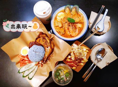 秘制番石榴,咖喱鱼蛋,梅子柠檬桔仔冰,丝袜奶茶,印尼鸡腿饭,鱼丸虾面,三色拉茶,马来西亚椰浆饭,马来西亚三色奶茶,叻沙汤海鲜米粉