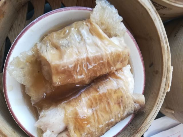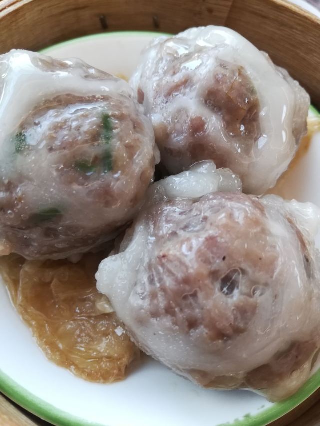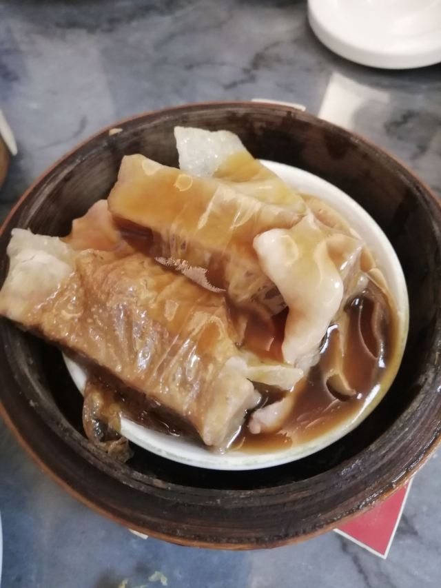 hj****70网油牛肉球,招牌点心,本来觉得会漏所以开始无打算点,但系隔离台话佢好滑——点佢!3粒牛肉球外面用层猪网油包住蒸,下面垫少少腐竹,有猪网油入口真系好滑,牛肉唔会落好多粉黎捞,老人家话以前整炸春卷,唔系用春卷皮而系用猪网油裹住炸架,当然偶然食下都唔会唔健康,而且配左碟喼汁——宜家无几家茶楼既牛肉球会主动配喼汁啦,呢家既喼汁仲加左少少辣,酸酸辣辣可以解网油既腻。 鹌鹑烧卖,3只一碟,第一次食啊,烧卖有猪润、猪肚同鹌鹑,前面2款就系原来烧麦上面放片猪润或者猪肚,鹌鹑呢?烧卖皮先放粒鹌鹑蛋,再填猪肉馅,系底底既鹌鹑蛋就唔会禄出黎啦,味道黎讲无咩惊艳。 鸡扎,鸡柳+冬菇+芋头+浮皮,用腐皮包住4条食材,调味蒸,带少少黑椒味道,2件一碟。 潮州粉果,3只一笼,有虾干,唔会好油腻。 濑粉,话系招牌,一碗唔大,不过材料就唔错——咸菜粒冬菇虾干猪油渣,虾干好多下,不过最经典系猪油渣,濑粉有猪油渣先好食架。 陈皮皮蛋酥,一碟2旧,其实就系一只皮蛋酥切开2件而已,暖暖地,莲蓉馅里面食到陈皮肉——好似陈皮梅个种大大粒既陈皮肉喔。