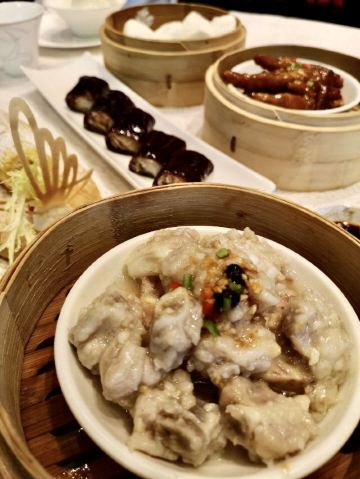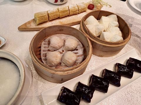 Always Cantonese Chinese Restaurant点评购买的四人套餐,满满一桌,出品、环境、服务综合指数五星。 【环境】🌟🌟🌟🌟🌟 番禺地区最好的高尚小区,酒店金碧辉煌又不失温馨。餐厅大厅明亮,光影浮动,卡座位宽敞舒适,窗边位景致优美,绿树掩映。餐具用品十分高档。 【服务】🌟🌟🌟🌟🌟 当日主管非常周到体贴,做合适推荐,并及时根据特殊需求调换座位。 【口味】🌟🌟🌟🌟🌟 398元四人套餐非常丰盛,差不多有10样早茶点心。「香芒水果薄餐」最好吃,添加的芒果内涵是亮点,清新可口。「紫米脆皮肠」很有特色,紫米粉皮别有一番风味。「豉油皇炒面」炒得焦香。其他的茶点都在水准。另外单点了豉油鸡,每次来的必点。 特别愉悦的早茶体验。