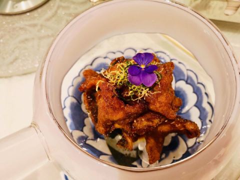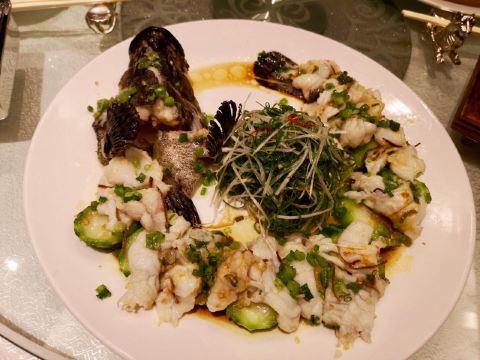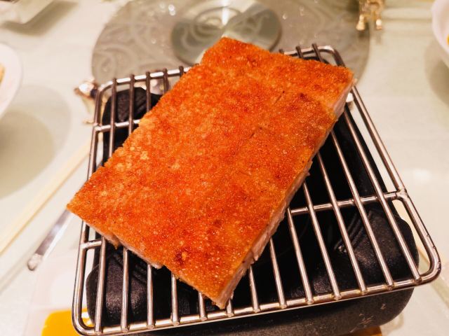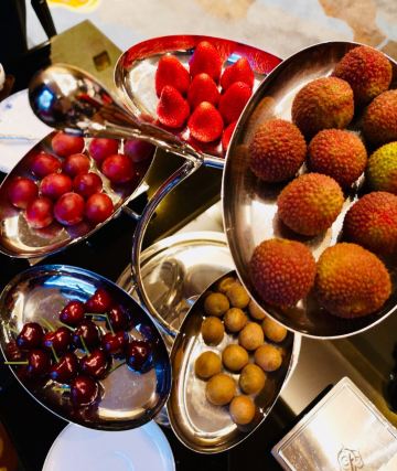 SophyJiang漫旅绘环境☀️ 位于酒店二楼的真粤中餐厅,中式古风的设计不失时尚,四处洋溢着简约的艺术气息。贵宾包房的檀香桌椅和屏风营造了私密空间,青花色餐具如点睛之笔提亮了浓厚的棕木色,氛围雅致舒适。 菜品 「餐前水果」餐前五层水果,红了的樱桃、艳了的草莓、鲜了的荔枝、灿了的龙眼,混搭农舍有机「五谷杂粮」,形成一派喜气洋洋、五谷丰登的开场,让我们以清爽的口味和健康的方式进入饕餮大餐。 “真粤”的每一次上菜,你都能感受背后管理者和主厨们的认真对待,就连三道凉菜都是那么隆重。 一道「凉拌核桃仁」,奶白的核桃仁好似朵朵白云,那么清脆可口,完全没有一点儿果涩;一道「凉拌云南迷你黄瓜」,手指大小的它们来自彩云之南,腌制的酸甜搭配的却是玫红的寿司蚌;一道「干冰熏鱼」,笋壳鱼为料,干冰上阵,烟雾缭绕中品到的是酥香甜嫩。 「冰烧三层肉」,黑色瓷炉中是微微的碳火,焦黄色的烧肉肥瘦相宜,入口即化的肉脂和香脆的皮层交织融合,回味绵长。 「海皇迷你冬瓜盅」,翠绿的夜兰花浮萍其上,正宗的冬瓜盅都会撒上这种小花,去浊添香而又不会抢味。冬瓜茸的清气,瑶柱蟹虾的鲜味,以及两厢煨出来的清亮汤汁,温暖了胃,滋润了舌。 「避风塘炒糕蟹」,金红色的糕蟹是轰轰烈烈的,厚实的身躯与肉钳横行在白色大瓷盘上。在炸蒜蓉那独特的甘脆焦香铺垫下,蟹肉的鲜嫩里弥漫着蒜蓉的奇香,让人忍不住口地把里里外外都全部收拾干净。 「昆明烫手乳鸭仔」,来自西南春城的鸭仔,很像海南的加积鸭,皮薄、骨软、肉嫩、脂肪少,乳鸭脆皮的烤制更是拿捏得恰到好处。 「古法蒸老虎斑」,古法的经典在于二十年的陈皮,理气化积的陈皮蒸鱼,让鱼的鲜美中别有一番风味。 「韭菜花炒虾配生菜」,可以带皮吃的河虾,肉质饱满,虾皮鲜脆,生菜的爽口可以增加你进食的数量。 「传统濑粉」,一道经久不衰的西关传统小吃,星河湾的主厨们认真地维护了从前的味道,粉质晶莹细滑,鹅肉、虾肉、冬菇的汤头浓郁鲜美。 「新西兰蜜糖萨其马」,令人难忘的一道甜品,麦卢卡蜂蜜是新西兰国宝级特色蜂蜜,气蕴天成,浓醇蜜香,质滑芳甘,它的加入让酥软的萨其马风味迷人、耐人寻味。 服务♂️ 星河湾真粤中餐厅的服务很温馨,从点单、上菜速度、餐中服务到买单送行,经理主管及服务生一直保持着积极主动的态度,周到细致、体贴入微并很有眼力,令这次精品粤菜盛宴的体验十分完美。