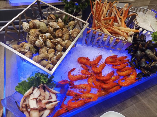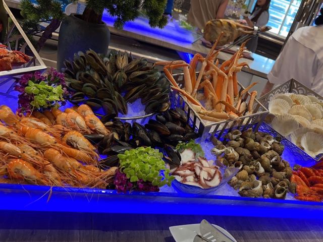 佛跳墙,牛扒,羊扒,炸鸡翅,海南鸡饭,杨枝甘露,壽司,哈根达斯雪糕,自助晚餐,三文鱼,自助餐刺身,海鲜,鹅肝双重奏,黑蒜烤生蚝,雪蟹脚