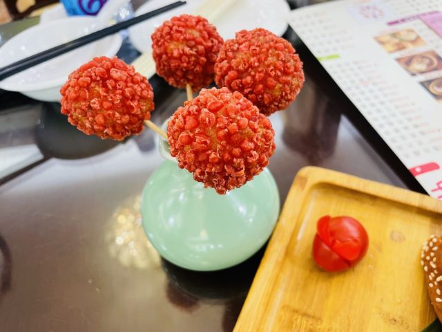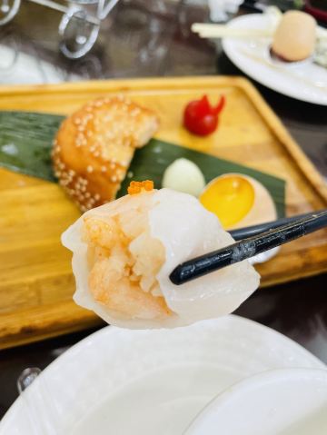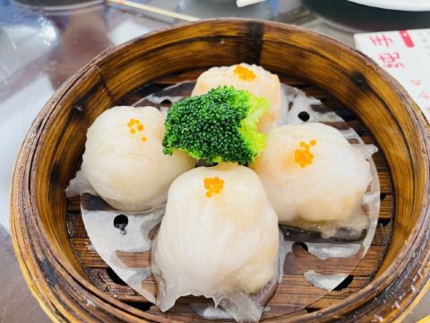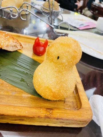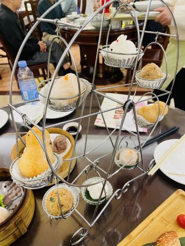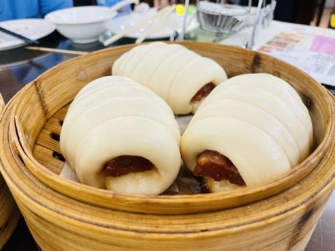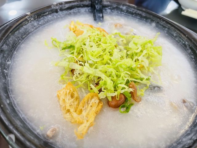 小懒Amber出差只来得及吃一顿早茶,精挑万选这家,跟着导航一路穿过居民区菜市场,走出巷子突然就来到大路一抬头看到招牌,好大一家店,古色古香,一口都是卖点心,种类很全,二楼吃早茶。工作日生意也很热闹。 艇仔粥是招牌必点,不过量很大一碗,三个人分都可以不要点多。 菜单挑有图片的大拇指点,基本没差。最喜欢吃咸煎饼,很合北方人胃口,油炸的香,口味咸甜。 想多吃几种的女孩子就选摩天轮每种2个尝一尝。 虾饺每个都有大虾仁,很鲜,荔枝球像里面裹着虾滑外脆里嫩。 鸡仔和蛋挞,造型特别,味道没有留下深刻印象。 腊肠卷太瓷实了,吃不下打包了,喜欢腊肠不如就去吃腊肠。 上菜很快,基本每道菜都有三四份,人多一起去更合适,价格比较实惠,小心别点多了。