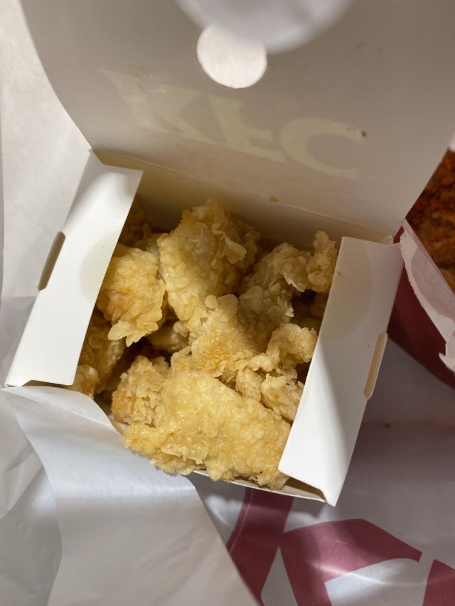 来到淘金,路过这一家肯德基餐厅,进来买点东西吃吃,顺便消磨一下时间,最近肯德基搞了一些APP上面的优惠活动,但是必须要有消费,任意消费都行,如果你是有刚需的话,领张券吧,能够优惠多少也是好的。我本来想要吃一个雪糕,但是居然没有比利时巧克力口味的那一种了。买了鸡米花和香脆鸡,香脆鸡上面好多调味粉,感觉一般般,鸡米花还可以。