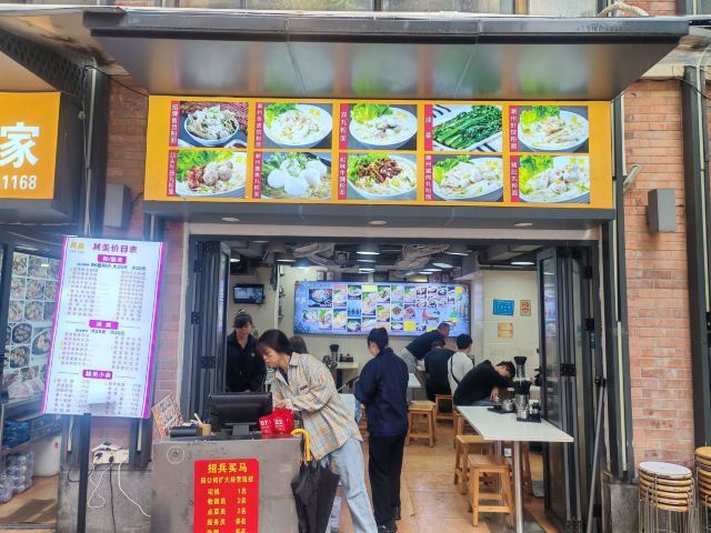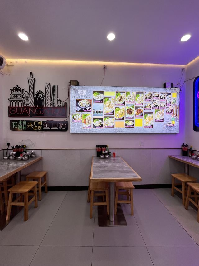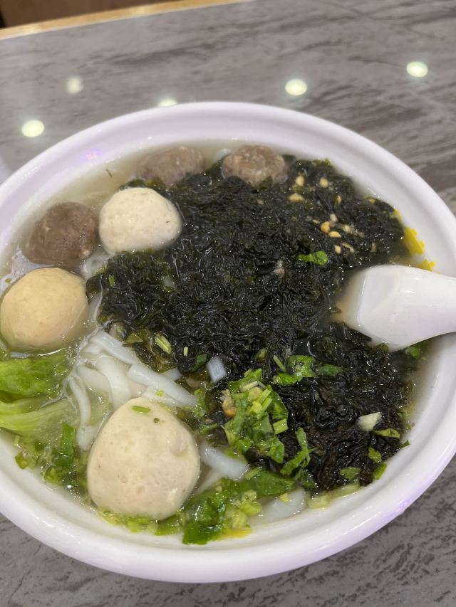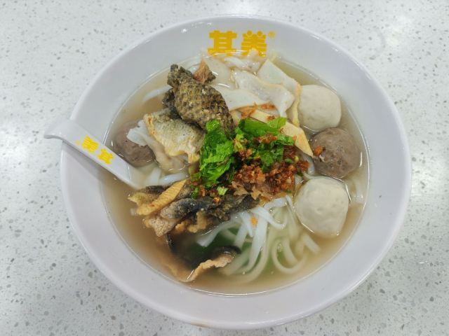 环境来说还是非常不错的.服务员态度很周到.桌椅摆放也很整齐.真是唔明點解咁多人吃。好貴,而且料又唔多。湯底仲要加奇怪的花椒。一碗牛腩面仲放左魚蛋粉上面才會放的蒜末之類的。味精重,飲左成個下午水都仲是口渴。而且河粉是用窄的那種,煮完透明那些,最多化學物的果種。价钱真的升了,感觉不太值,鱼皮,真是好硬,浸系汤里边吃,很是不错。大佛寺旁的其美潮州鱼旦粉,紫菜什锦汤,炸鱼皮,很是脆,好吃。