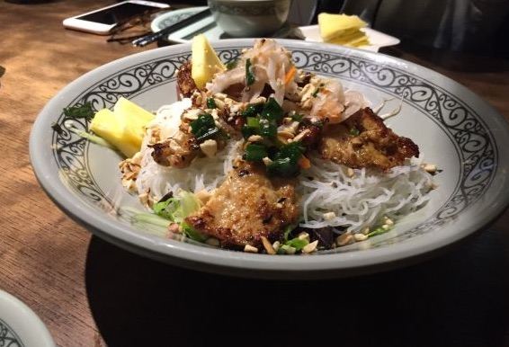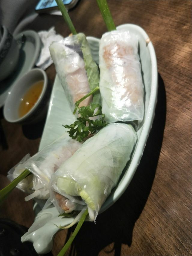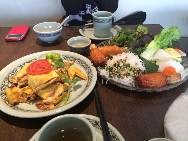 陌染MM这里是一家排队餐厅,经常都会见到门口等满了候位的客人。菜品的价格现在都有所升价了,已经没有以前那么抵吃了,出品的话,经典菜式都有所进步了,但是如果不是越南的传统菜式的话,出品就不行了。这里的服务现在挺好的,也比以前改进了很多,很热情了,也不定时帮我们追菜。 越南香茅鸡檬是每次都会点的,碗很大,里面的食材也很丰富,有檬粉、豆芽菜、酸萝卜、香茅鸡扒、菠萝片等等,这个是一款冷的粉,端上来的时候是干的,然后需要倒入酸甜汁搅拌着吃。我觉得檬粉是越来越少了,反而芽菜就越来越多,所以总体看上去也会觉得分量很足,其实一碗吃下去也未必真的饱肚。越南春卷也是必点的,春卷的皮很脆,里面有些檬粉,很软,炸出来香香的时候,趁热用生菜包裹的,再蘸点酸甜汁吃,味道特别好,我也是最喜欢这种酸甜的味道。另外点了芥兰炒牛柳,上来的是牛肉片,蔬菜很多,牛肉量不多,还吃了一股怪味,不推荐。