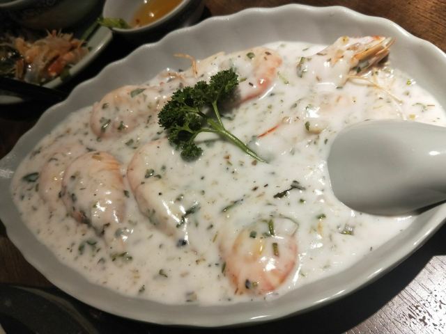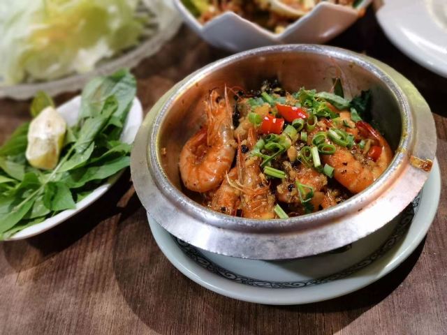 Tiger Prawn Vietnamese Re大头虾真的次次都要排队,光明广场这家店在楼上,人还算少的,排队不用很久,店铺还挺大的,座位比较多。但整体灯光挺暗的。这里冬阴功汤我觉得一般,不是特别好吃,有点太酸了香料有点太多了。其他的还可以。越南的菜卷,里面生豆芽的味道太重了,也不是很推荐,但奶油虾还不错。