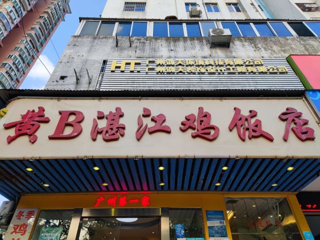 黄B湛江鸡饭店,位于广州市天河区粤垦路靠近天寿路的位置,这家湛江鸡号称是广州第一家,而名字本身就相当让人印象深刻了,在这条食肆云集的粤垦路上,能屹立这么多年的老店也肯定有他的道理的,湛江鸡店自然主打就是湛江鸡了,湛江鸡是越肥越香浓的鸡味,这是店家推荐的,另外招牌菜还有莲藕,墨鱼饼等,味道都做得不错,性价比还是可以的。
