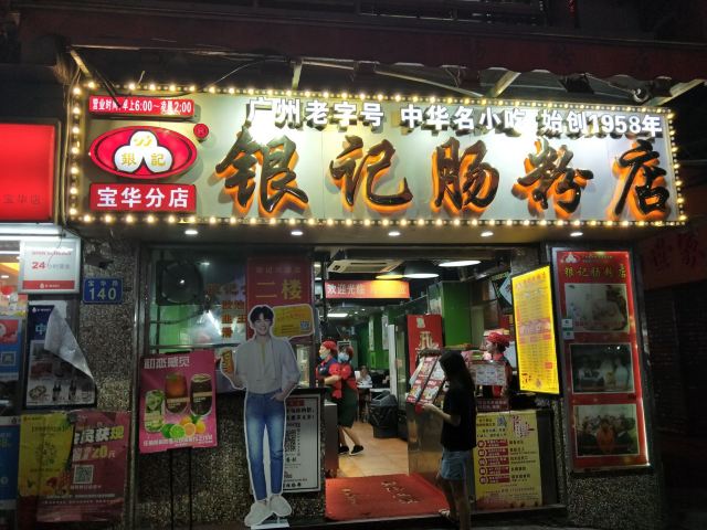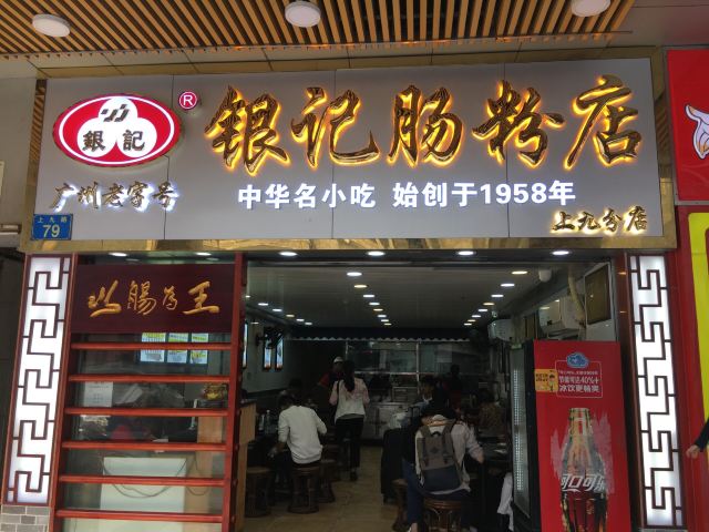 Yin Ji ChangFen Dian (ShangJiu Road)银记肠粉店创建于上世纪50年代,是主营肠粉、粥等美食的连锁餐饮服务企业。多年来,凭借质优味美的传统布拉肠粉驰名于省港澳,其肠粉以“粉薄、味鲜、爽滑、口感独特”而赢得了“白如玉,薄如纸,爽滑微韧,味道鲜美”的评价,早在五、六十年代,“银记肠粉”就名扬广州老西关地区,经过近年的企业改革与创新,银记肠粉有了新的发展和新的提高,在省港澳地区都有较高的知名度和良好的声誉,成为了广东传统布拉肠粉的代名词。