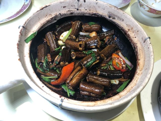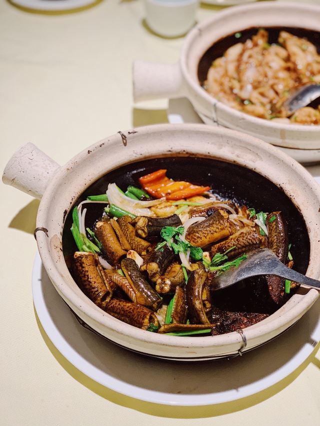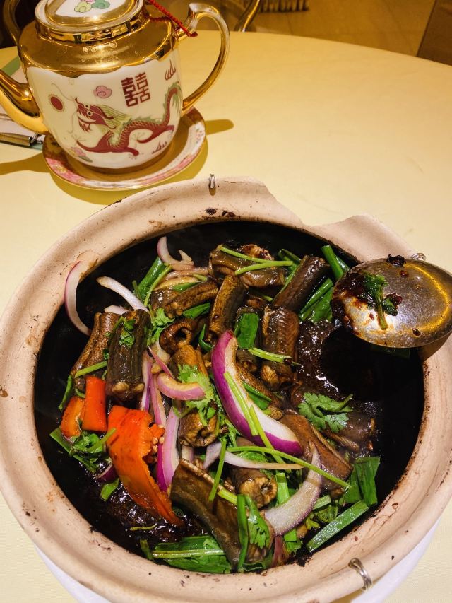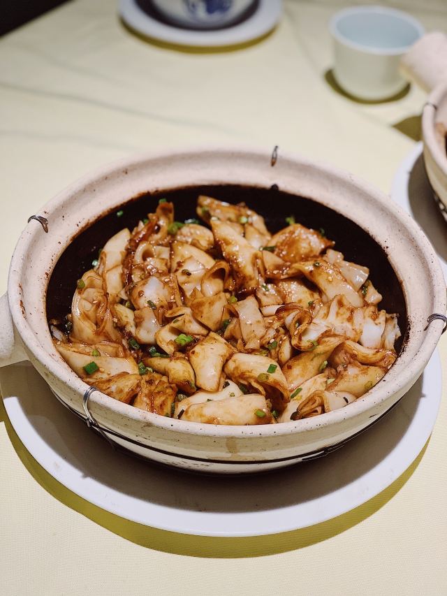 摩小亚总评: 一家集各种荣誉于一身的27年老字号餐馆。 作为游客,似乎不应该不去,哪怕是排队也该多点耐心。 生意是真的好,早点去可以避免排队。 上餐很慢很慢,等了一个小时,催促过后,5分钟上菜了,是漏单吧! 印象瞬间差很多。以后恐怕不会再光顾了。 评分:80分 性价比:❤❤❤ 前一天预订餐位,店员说早餐10点来排队吧,11点开餐。 好吧,我们10:30到店,坐下之后等了半小时,可以点菜了。比较迅速的点好菜。 等了20分钟,汤上来了。接着又等了40分钟,啥都没上,其他比我们后下单的客人都已经满桌菜肴了。 等不住,催问店员之后,说去给我们催单,果然5分钟就上了。我敢肯定,这个一定是给我们漏单了。因为我们点的那两份啫啫煲都是属于快手菜啊,不会说等很久很久的呀。 在一家店浪费2小时,我表示很不开心,你们时间是时间,客人的时间就该随意浪费吗? 【啫啫黄鳝煲】 这个是必点菜,一上桌,立马开盖,翻搅鳝鱼,不然很容易就粘锅的。 “滋啦滋啦”的声响很动听,特别有生气的样子,还没吃已经饱足眼瘾了。 鳝段是带骨的,味道还行,肉细腻嫩滑,骨头还是脆脆的。火候刚刚好。 【红烧乳鸽】 平常多是吃的烤乳鸽,皮脆肉嫩,油滋滋的。第一次吃红烧乳鸽,还蛮有意思的。 乳鸽比一般的烤乳鸽要大只一点,肉也更肥硕,肉汁保留得很好,一边撕扯一边在肉汁呢。 外皮虽不脆了,但还多有滋味的,也挺好。 【啫啫肠粉】 好像是该点啫啫生肠,但是点错了,点了这个肠粉。就是把黄鳝变成了肠粉。 拌匀之后,雪白的肠粉段变成了酱色,也吸收了酱味,感觉这个酱汁用来拌白米饭肯定也是一绝哦。就如他们家的焗饭,看起来就很美味很香。但是太大份了,两个人吃不完,不敢点。 【椰子竹丝鸡汤】【西洋菜炖陈肾汤】 广州的煲汤自然是没得挑,真的水平都很高。他们家的也不错啦,但比起前一日在顺德的【国英炖品】还是差了点。用料很足,汤头清甜不油腻,喝完特别舒服。 【榴莲雪糕】 一球榴莲雪糕,味道不似我想象中那么浓郁,但是这样也挺自然的,太浓郁也怕有额外添加。 垫底用了一些脆脆的颗粒,增添了口感层次,点缀得很妙。 好吧。太火爆的餐馆,总是容易出现服务方面的纰漏,也容易让人失望。