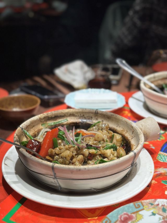 未接来电2019网上传的特别火的一家宝藏店铺,和朋友机场怕排队下午五点就来了,果然一桌都没有,心想针不戳,自己太明智了。后来才知道,人家五点半才开始营业,哈哈。 作为一个东北人吃了好几天的粤菜已经濒临崩溃边缘了,但是来都来了怎么也要体验够,只是让人郁闷的是那天店居然停电!空调坏了!心塞啊。 点菜的时候一打开吓了一跳,前面好多页全都是一千多一个锅 吓得我赶紧从后面开始翻,鳝段煲推荐,和乳鸽推荐,比较正宗,乳鸽是卤过的,对不起关于粤菜我无法给出准确的点评,反正都有点甜。那个汤还是不错,料很足,乳鸽汤里面全是肉!而且很鲜美。 服务态度不是太好,装修也是比较旧,价格也不是太实惠。三分半吧,不能再多了。