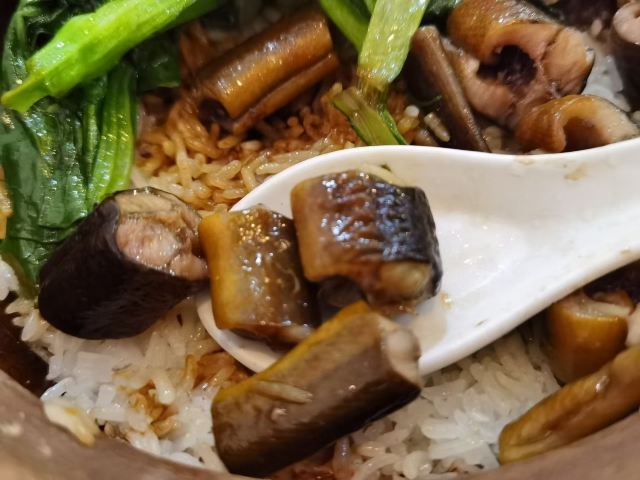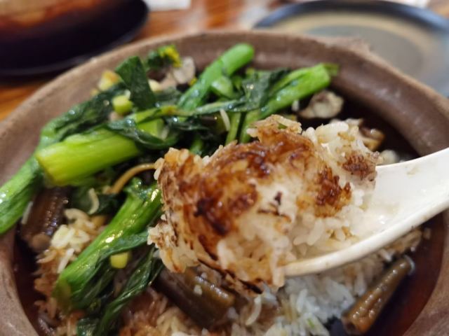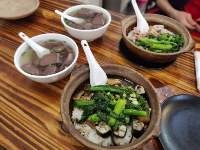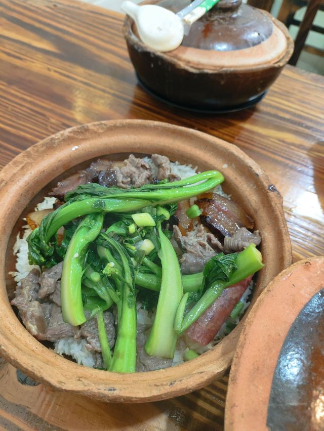 这家店开了好多年了,以煲仔饭成名,以煲仔饭知名。 环境:传统广州街边小店风格,虽几经扩容,风格依旧,但收拾得干净整洁。 口味:这里有品种多样的煲仔饭,品种比较齐全,很多其他店子吃不到的品种,这里都能吃到。常见的有牛肉、鸡肉、排骨、腊味、黄鳝,喜爱焦香的就可能觉得这里的煲仔饭并没有多少饭焦,见仁见智吧。牛三星汤、枸杞猪杂汤、猪红汤,广式生滚汤,多少年的传统味道。 性价比:煲仔饭、汤的份量还是很足的,一个人二三十能吃得很饱。
