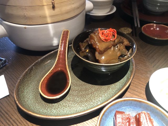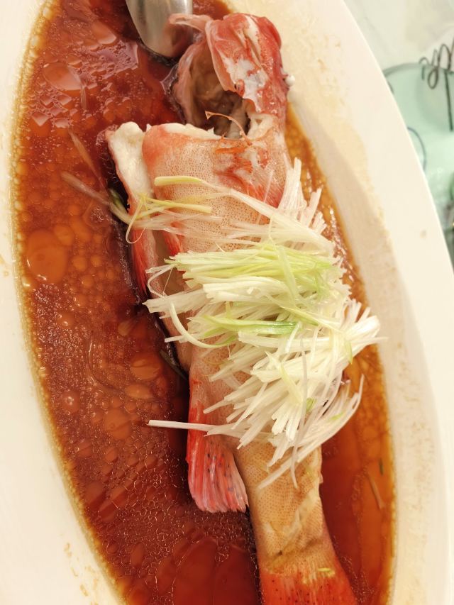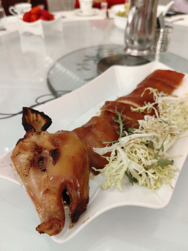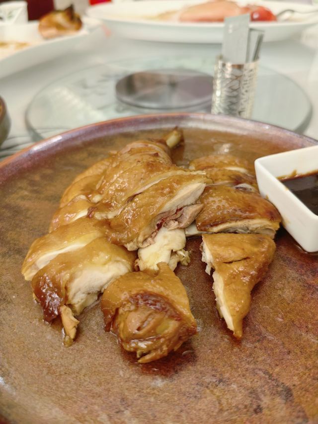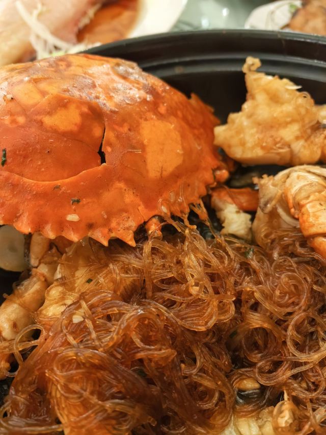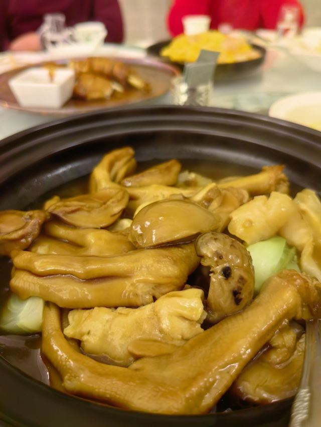 【服务】很赞的年夜饭。味道不错,而且人气满满,真的是广州人过年都在外面晃着 【口味】 💯即烧原只脆脆BB的猪,皮很脆,肉很薄,所以不会腻 💯粉丝肉蟹,粉丝很入味,蟹肉也肥且嫩。 💯东星斑,东星斑很鲜,肉质细腻 💯原汁鲍鱼一品煲,鸭掌可以脱骨,味道也很入味 💯生碌酱油鸡,肉很嫩,蘸酱是北京烤鸭的甜酱,好吃。