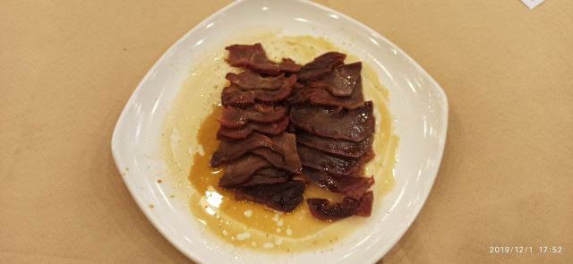 魔女锦鲤回民饭店广州的老字号之一,清真菜餐厅,除了清真菜之外还有粤菜,记忆中一直都没有来试过,刚好晚上路过西门口就决定来试试,周六晚上6点左右到就已经满座了,需要等位,部长很热情地挽留我们。说很快就会有位置的了,还主动帮我们找到有一张可以拼台的,我们也不介意拼台,于是很快就入座了。 菜牌都挺多选择的菜色,因为这里是清真菜馆,所以是没有猪肉的,冬天刚好是吃羊肉进补的好季节,于是就点了几个特色的羊肉菜,白切东山羊,羊叉烧,羊肉饺子,教门油香。 羊肉饺子,卖相虽然一般,但煎得几香。 羊叉烧,平时吃猪肉的叉烧吃得多,羊叉烧还是第一次吃,肥肉的部分不多,基本是瘦的,酥香而带有蜜糖味。 白切东山羊,肥瘦相间,吃上去也不会觉得有膻味,蘸沙姜酱料来吃味道独特。 教门油香,名字很独特,其实就是油香饼,经过油炸,很酥化,外脆内嫩,味道不错。 总体在这里吃羊的菜色味道都不错,下次可以再试试其他的牛肉菜色。